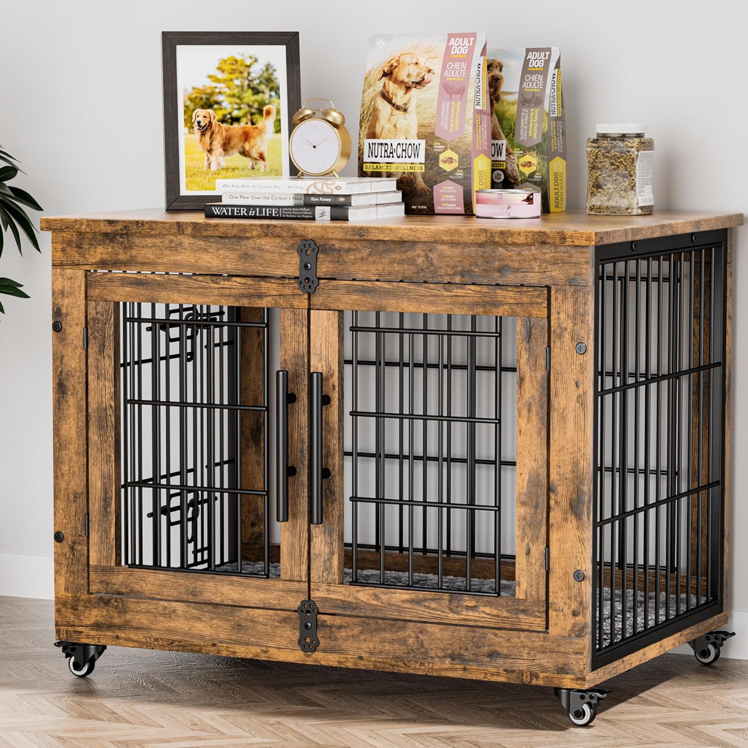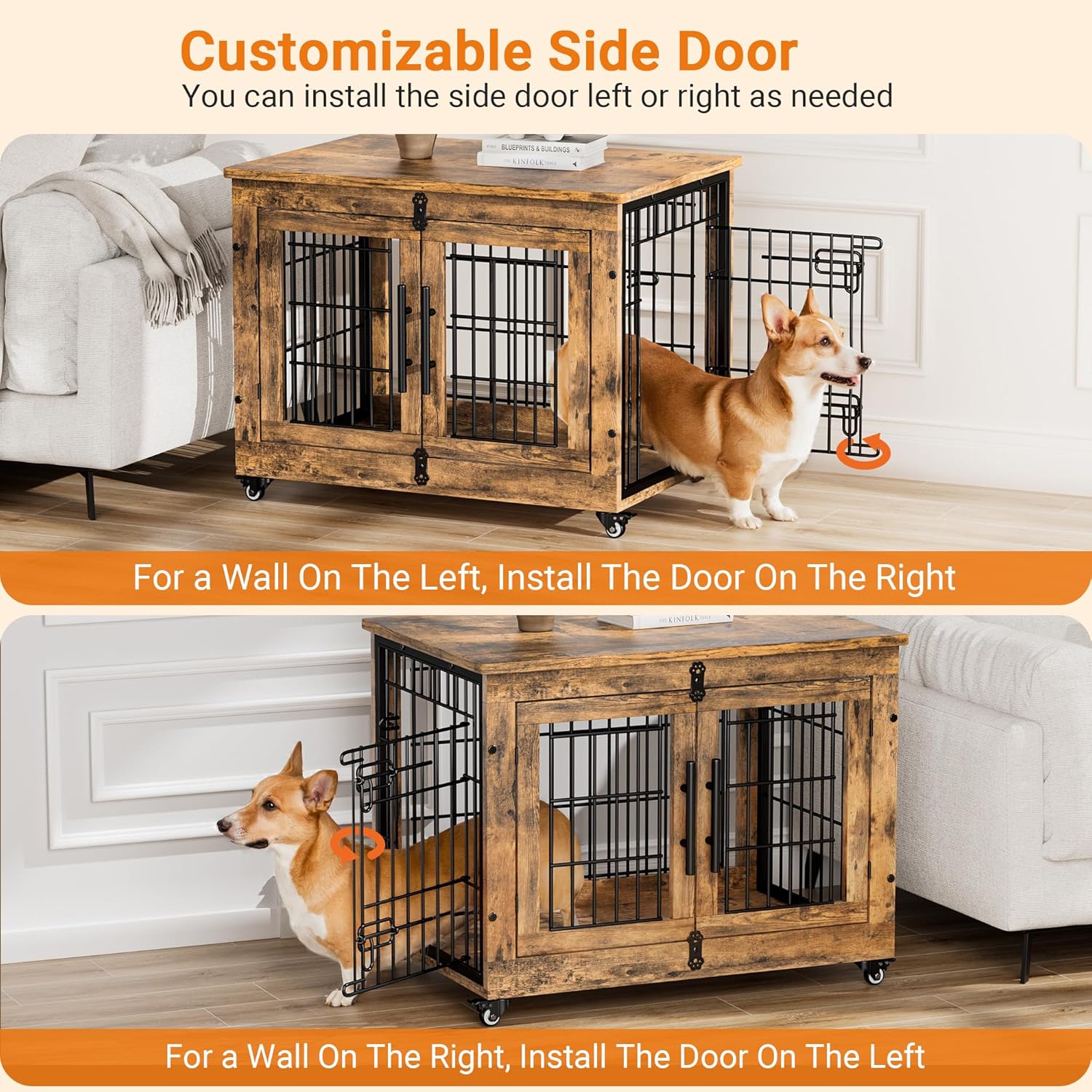 - [Multi-Purpose Dog Kennel Furniture] Provide enough space for dogs to move around, play, and rest and also perfect as a side table or nightstand of storage needs for you. Wood dog crate will blend into any home decor, providing a combination of furniture and function for furry dogs while also being a space saver.