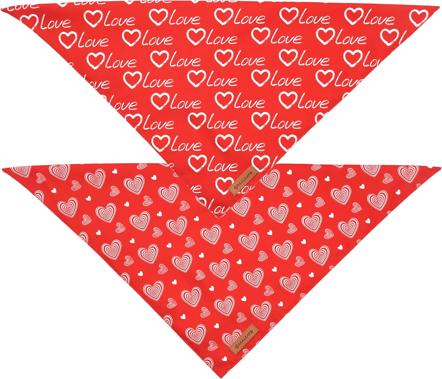 Realeaf Valentines Day Dog Bandanas 2 Pack, Reversible Love Pet Scarf for Boy and Girl, Premium Durable Fabric, Heart Bandana for Medium Large Dogs (Large)
