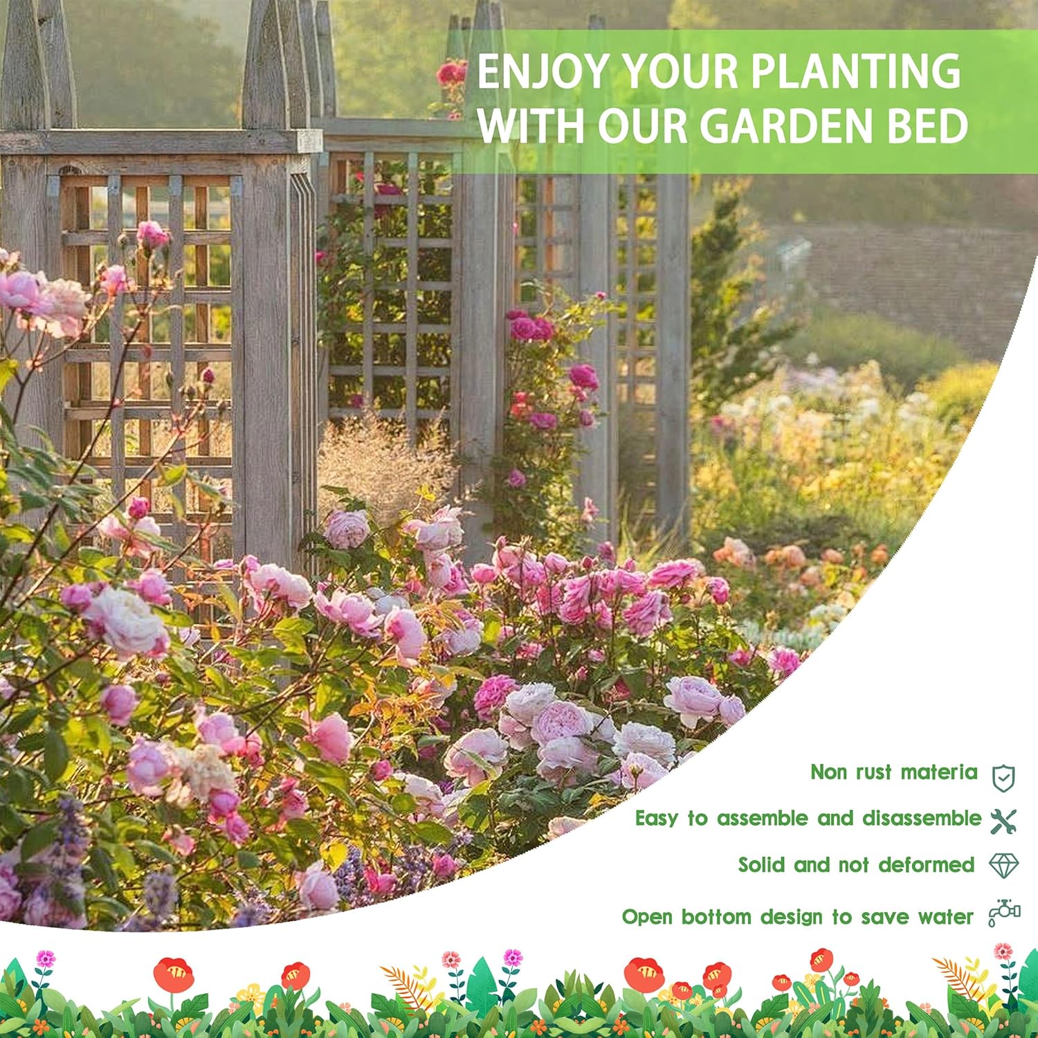 - Bottomless Frame: Provide a good drainage effect, make the soil more permeable to protect the plant root, so the plants would grow better