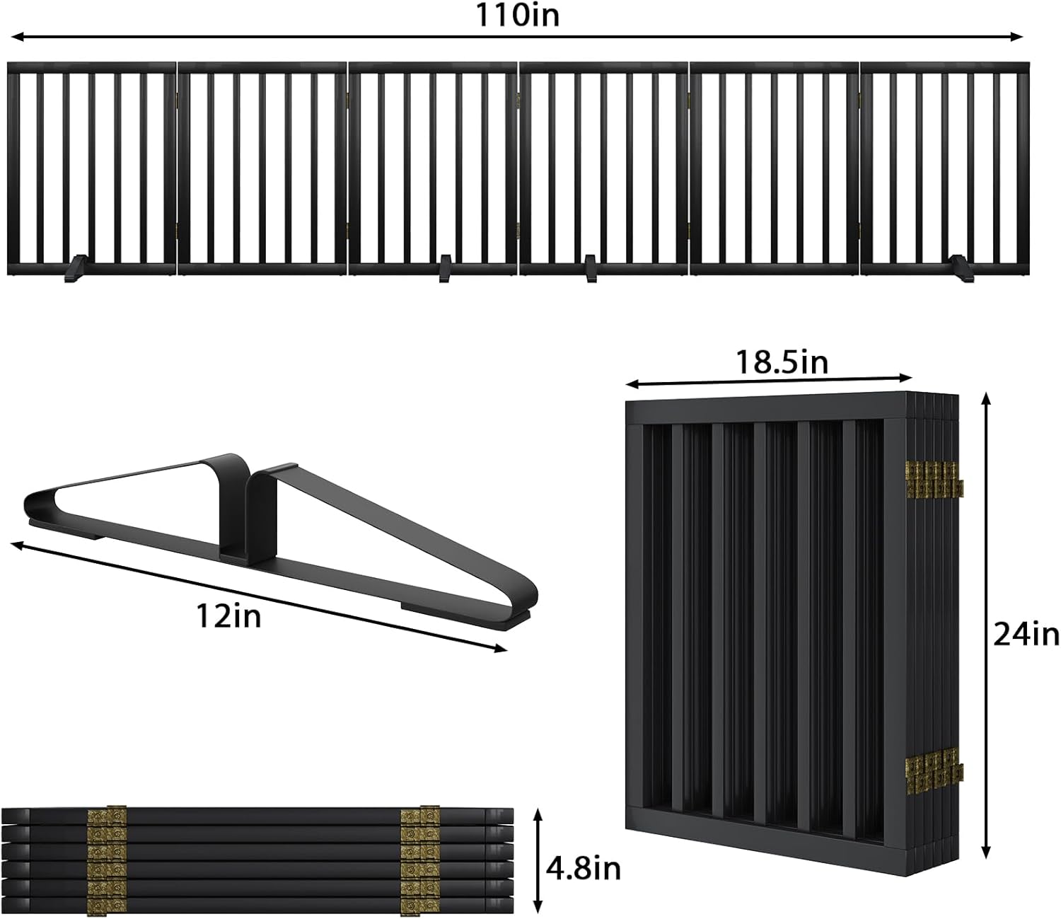 Extra Wide Dog Gate 110 inches Wide, Freestanding Pet Gate for The House Doorway, Pet Puppy Barrier, Support Feet Included, Black,6 Panels