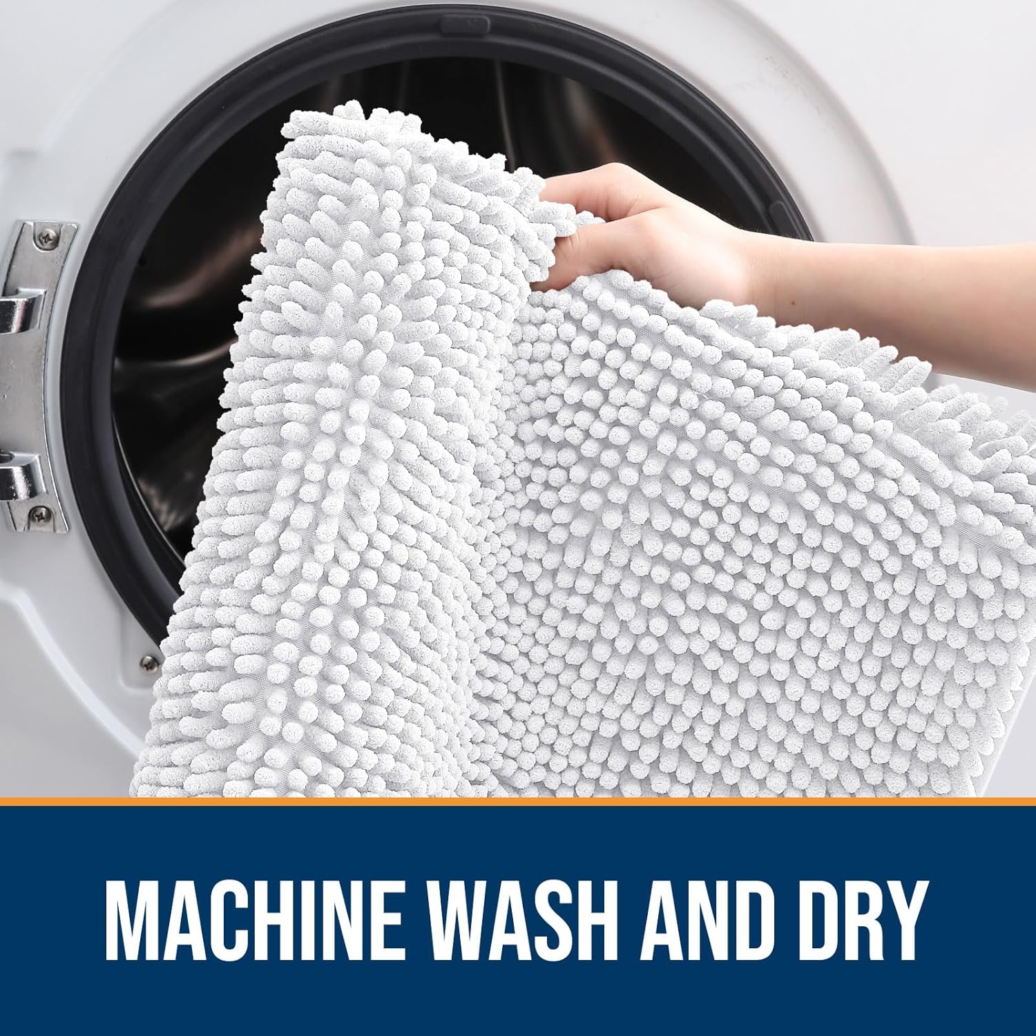 OLANLY Dog Door Mat for Muddy Paws 47x24, Absorbs Moisture and Dirt, Absorbent Non-Slip Washable Doormat, Quick Dry Chenille Mud Mat for Dogs, Entry Indoor Entryway Carpet for Inside Floor, White