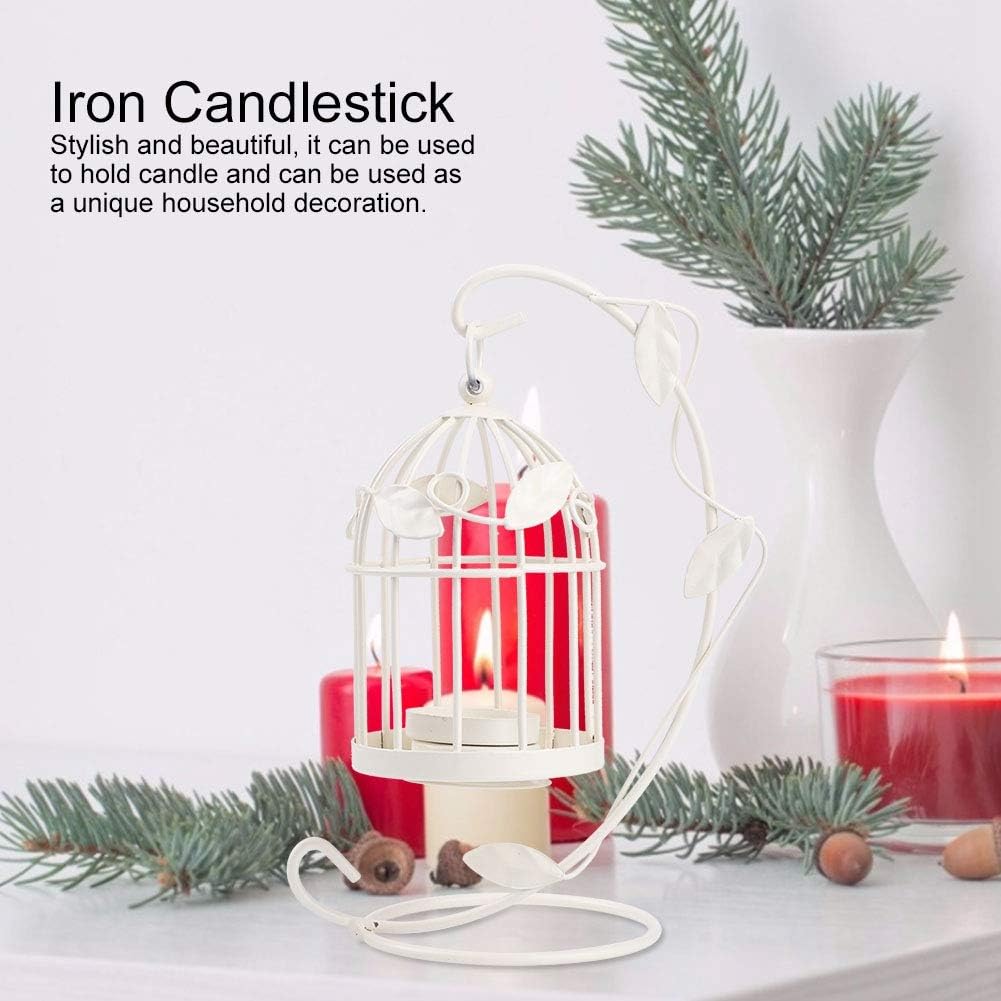 Birdcage Candle Holder, Hanging Candle Holder Decorative Bird Cages Bird Cage Decor Vintage Metal Candlestick for Wedding, Party(White)