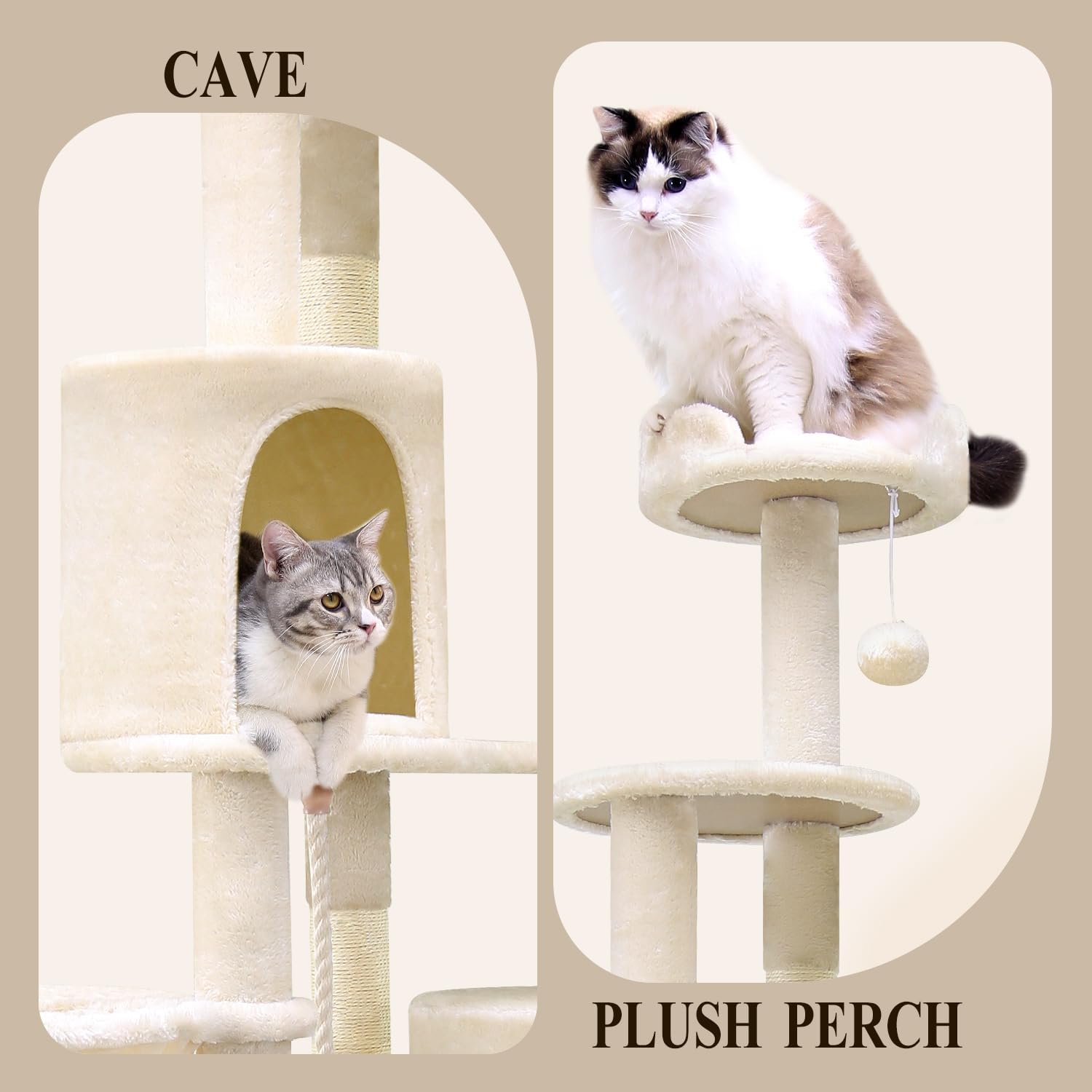 - SPACE-EFFICIENT DESIGN: Our elegant curved structure maximizes vertical space while maintaining a smaller footprint. Each platform and condo is sized perfectly for small to medium cats, featuring cozy spaces that make your pets feel secure and comfortable