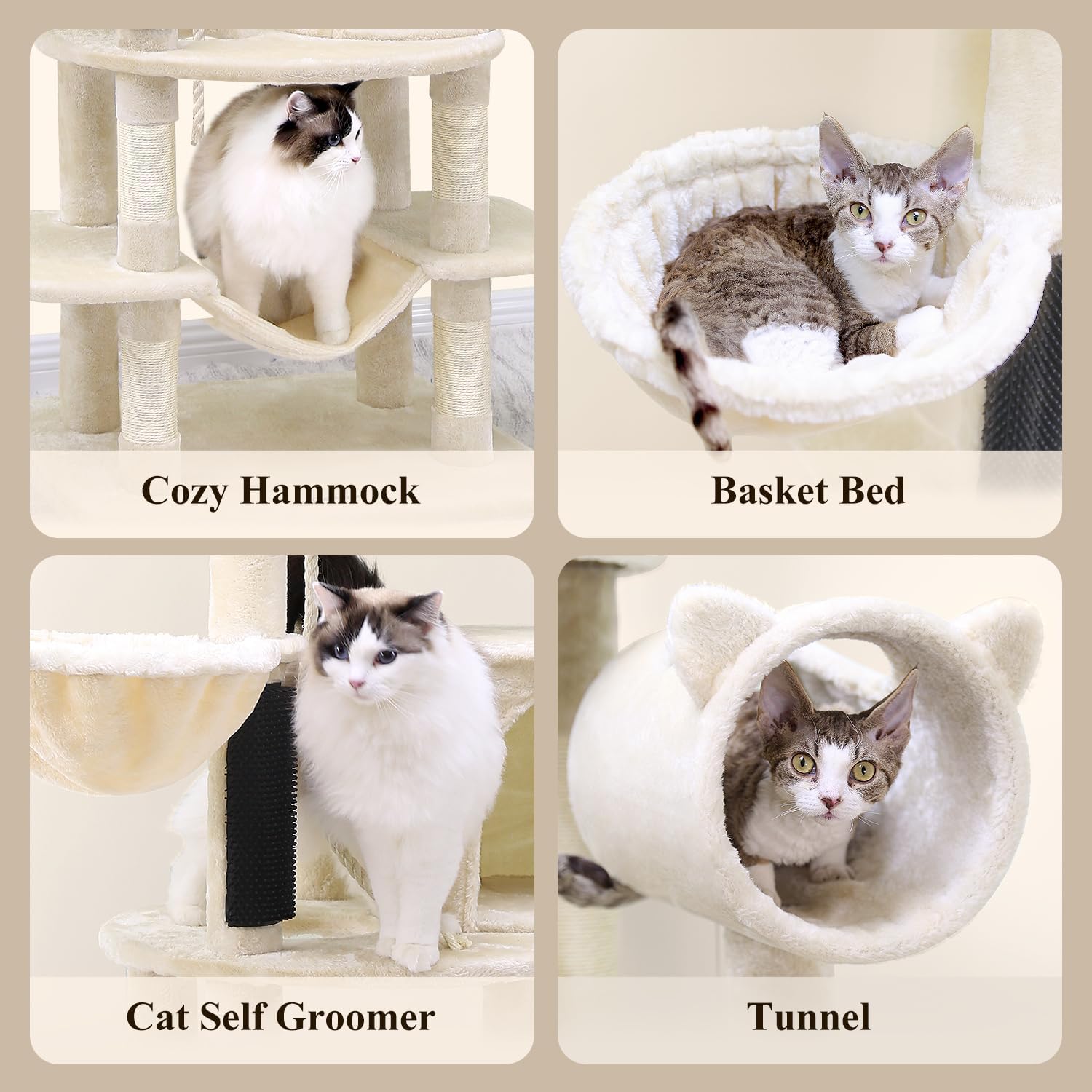 - ENGAGING FEATURES: Includes a perfectly sized hammock, observation tunnel, and multiple platforms designed specifically for smaller cats. The elevated positions allow your small felines to safely observe their surroundings and enjoy window views