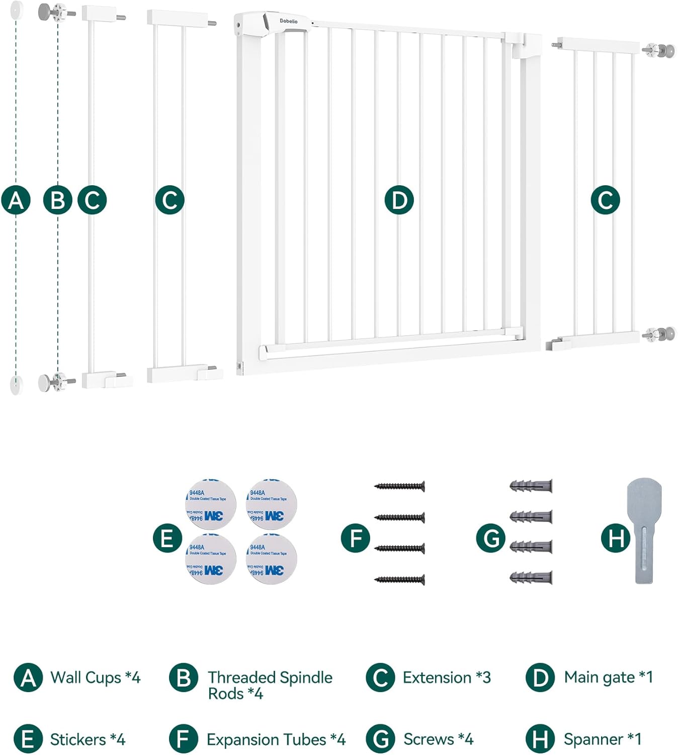 BABELIO 36-57" Extra Wide Baby/Dog Gate, Auto Close with Large Walk Thru Door,Safety for Pet, House, Stairs and Doorways, Pressure Mounted for Chlid, White