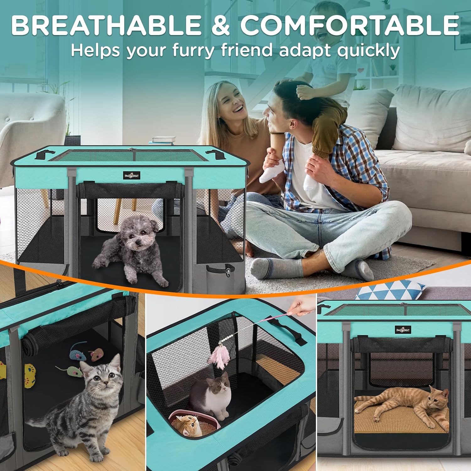 Foldable Pet Kitten Playpen, Waterproof Portable Pet Cat Dog Playpen Kennel Tent for Small Dog Cat, Removable Shade Cover, Come with Free Carrying Case, Indoor Outdoor Use for Small Animals, BlackTeal
