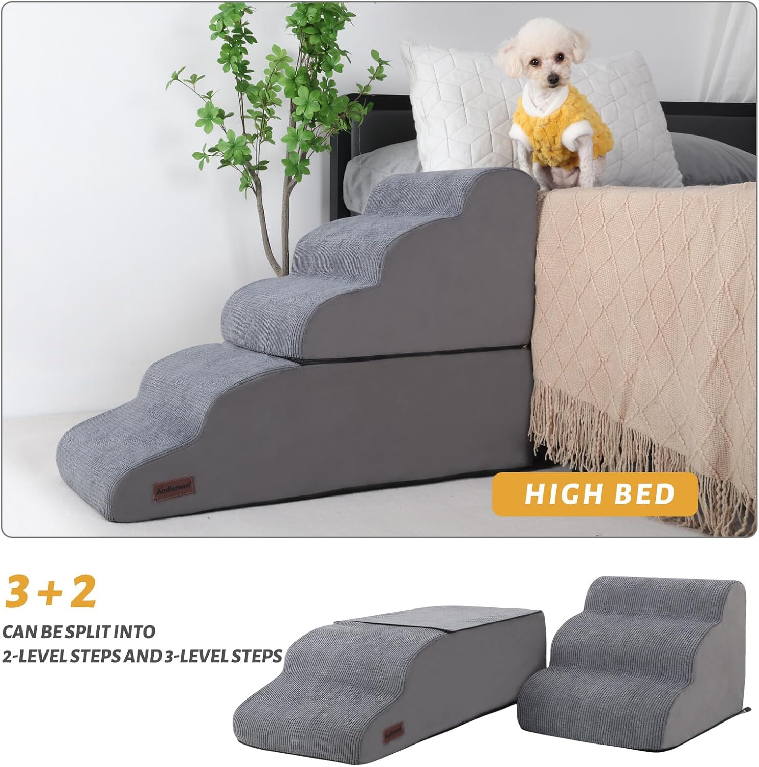 Dog Stairs and Ramp for High Bed, 5-Step Dog Steps for Small Dogs and Cats,Non-Slip Pet Stairs Suitable High Bed Climbing
