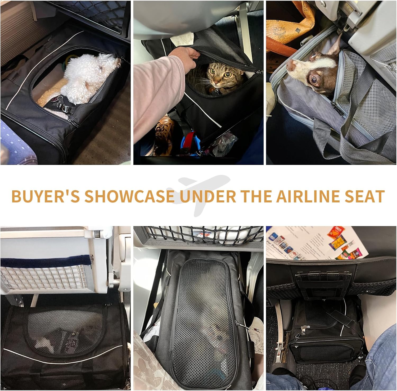 - Check Size Before Buying: To fit under airline seats, airlines only allow small dogs and cats. We recommend that the pet size you carry be within 14"L x 9"H. Be sure to consider your pet’s length and height when selecting the appropriate carrier size. This cat carrier is specially designed for aviation use. For other scenarios, welcome to check out Petsfit's in-car and other series