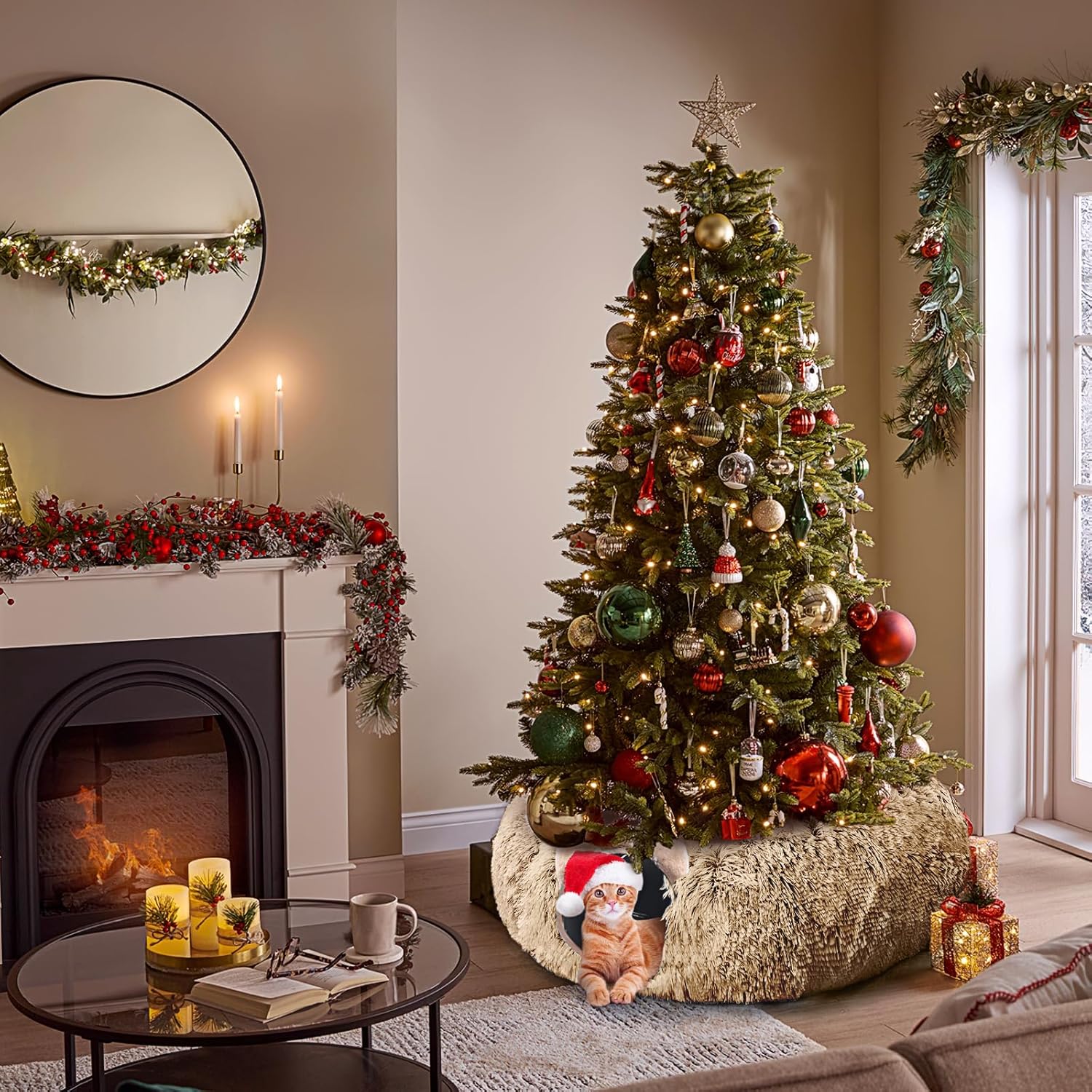 Cat Tunnel with Cat Bed for Indoor Cats, Soft Plush Peekaboo Cat Cave Donut Tunnel, Multifunctional Playground Toys Hideplace for Small Medium Large Kittens, Rabbit, Ferret, Brown