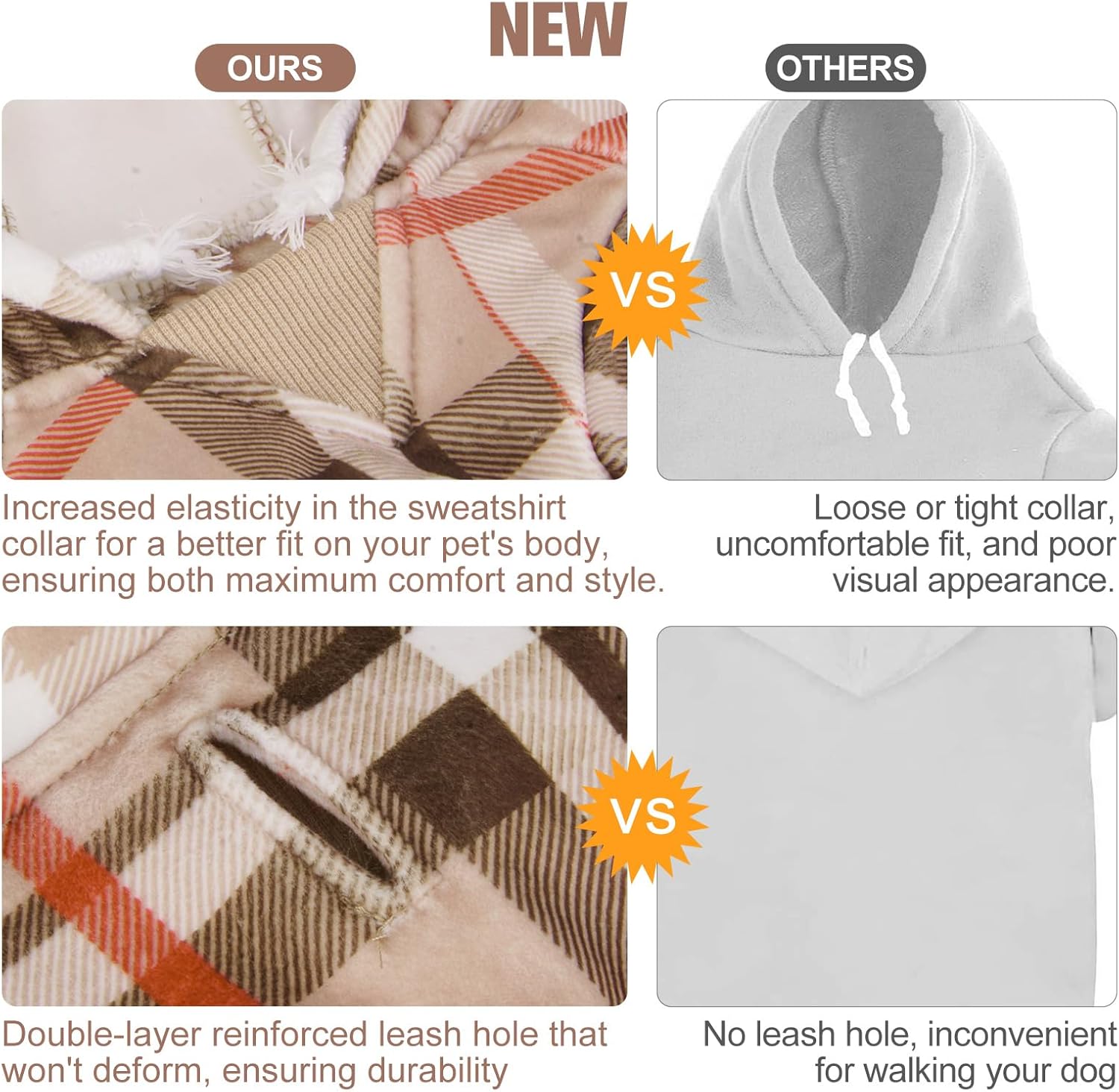 - Stylish & Practical Look: This plaid dog hoodie boasts a classic vintage check pattern that makes your pup stand out! Includes a handy back pocket for storing treats, toys, or waste bags. reinforced leash hole adds safety and durability—perfect for walks, running, hiking, training, or festive occasions like Christmas, Thanksgiving, photo shoots, and birthday parties.