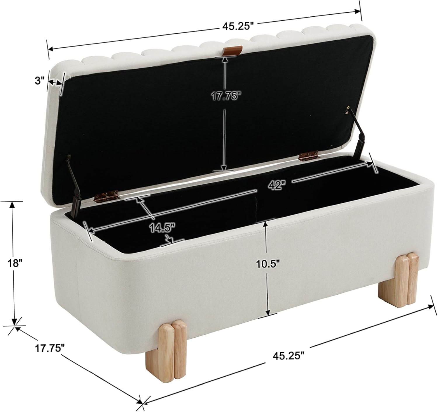 - SIZE DEMENSION AND STORAGE SPACE-Overal size:17.75"DĂ45.25"W Ă 18"H; Internal storage space: 14.5"DĂ42"W Ă 10.5"H. Not only is it an elegante furniture that can enhance aesthetics, but it is also an large additional storage space. In addition, it slows down the speed of lid closure and increases usage safety, especially when used as a storage stool for children's toys