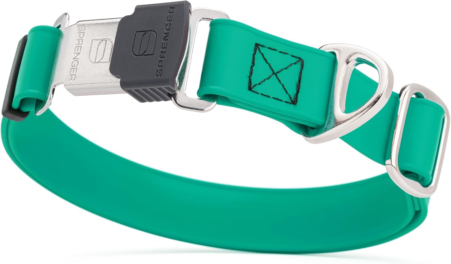 Dogline Biothane Waterproof Dog Collar with Herm Sprenger Stainless Steel Quick Release Buckle – Heavy Duty Tactical Durable Collar for Dogs – Comfortable and Safe Pet Collar, W 3/4" L 12-19", Teal