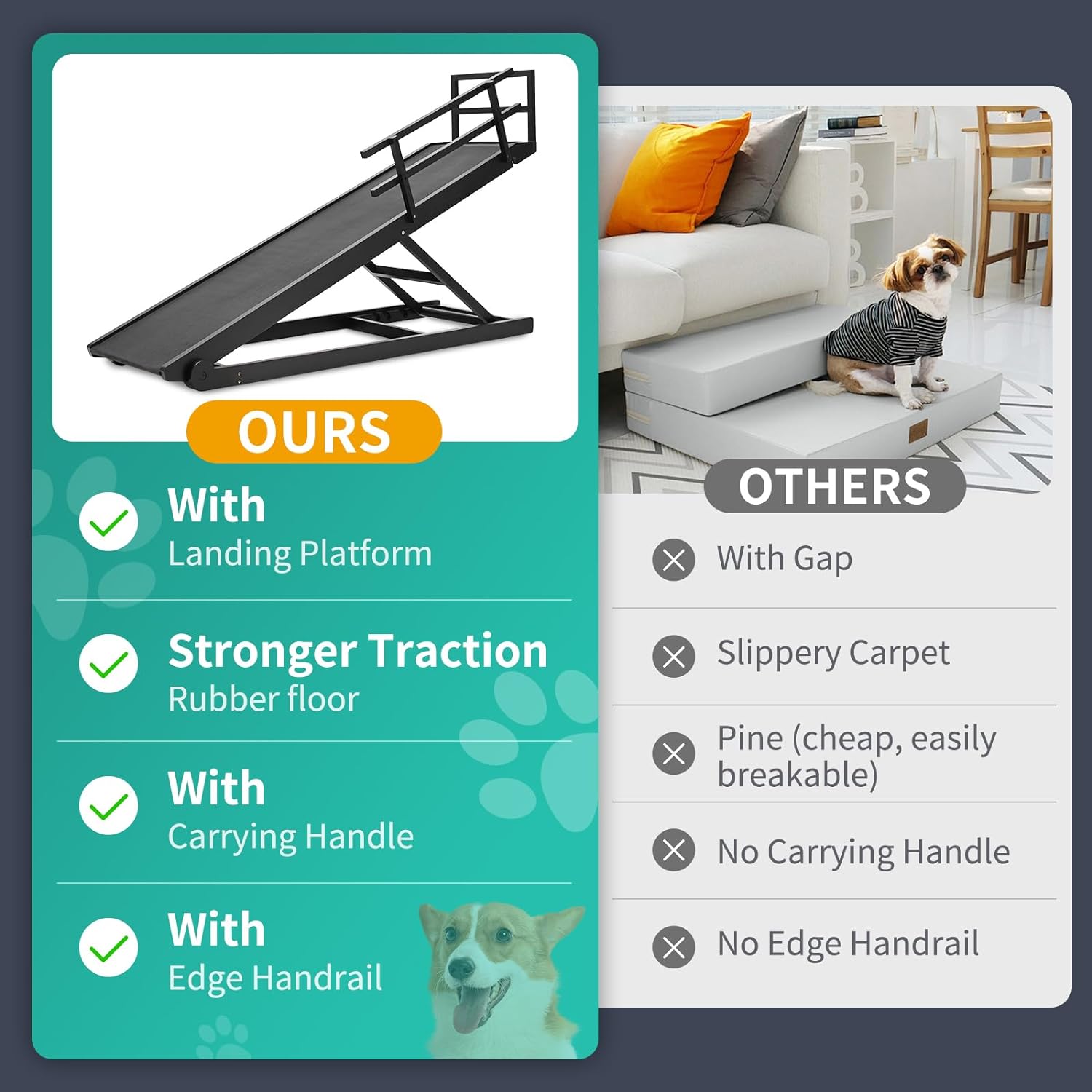 - HIGH TRACTION & ANTI-SLIP - Upgrade Rubber Mat provides anti-slip surface which gives incredible traction to your dog. Built from sturdy wood and equipped with stainless steel fasteners to provide heavy-duty support and maximum durability, It can support pets up to 200 pounds.
