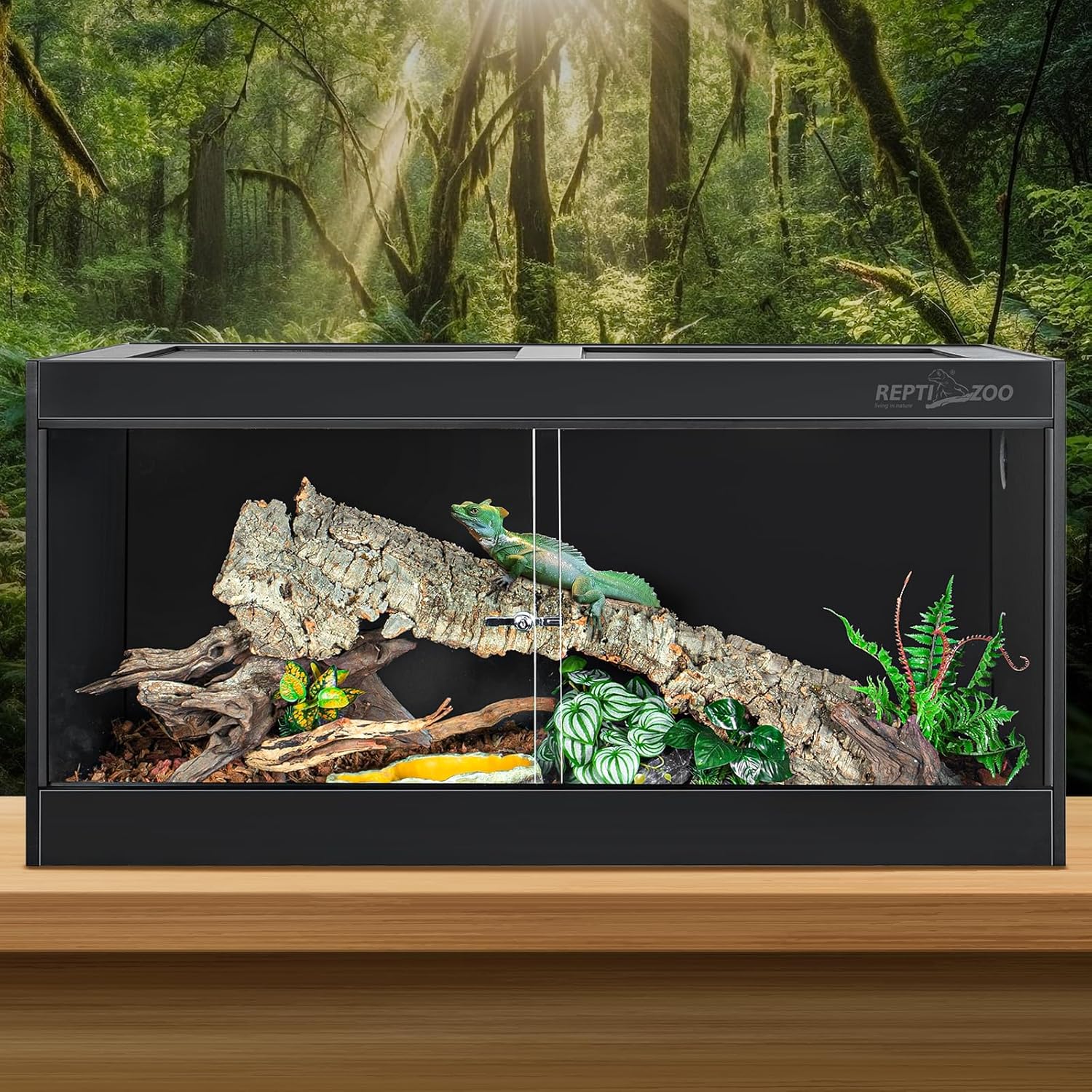 REPTI ZOO 120 Gallon PVC Reptile Tank Terrarium, 48x24x24 Reptile Terrarium for Ball Python Snake Bearded Dragon Gecko, Large Reptile Glass Tank with Sliding Door & Screen Ventilation