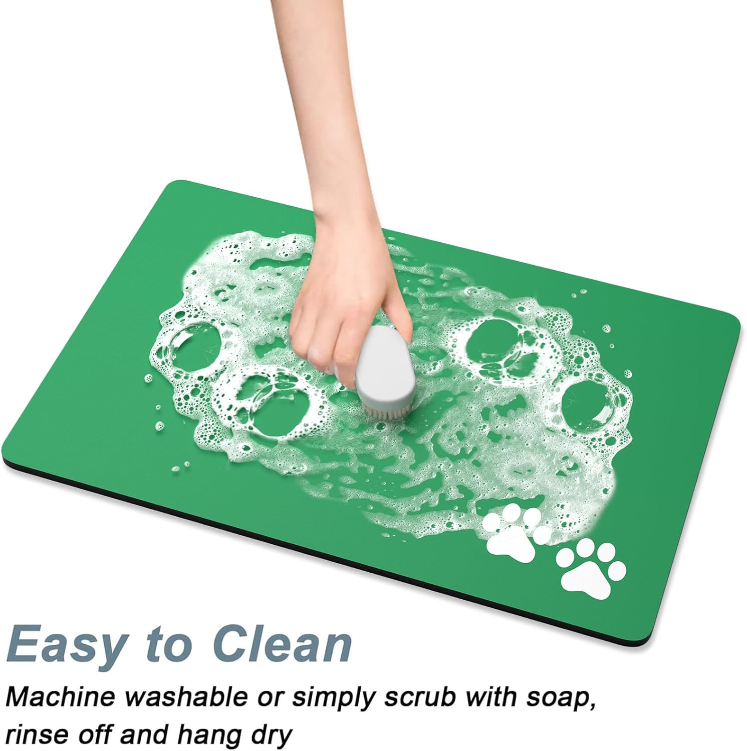 Rnivvi Dog Food Mat, 12" x 19" Footprint Absorbent Dog Cat Bowl Mat for Food and Water, Cute Anti-Slip Rubber Pet Feeding Rug Protect Floors, Puppy Placemat for Feeding & Watering Supplies, Green