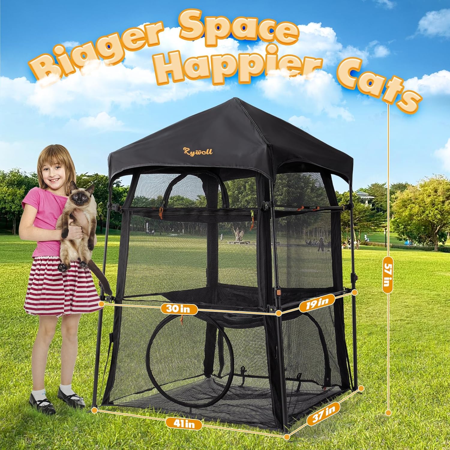 Extra Large Catio Outdoor Cat Enclosure, Rywell 3-Tier Spacious Outdoor Cat Tent, Weatherproof&Sunproof with 5 Windows, Foldable Cat Enclosure for Patio, Camping, Indoor(Includes Carry Bag)