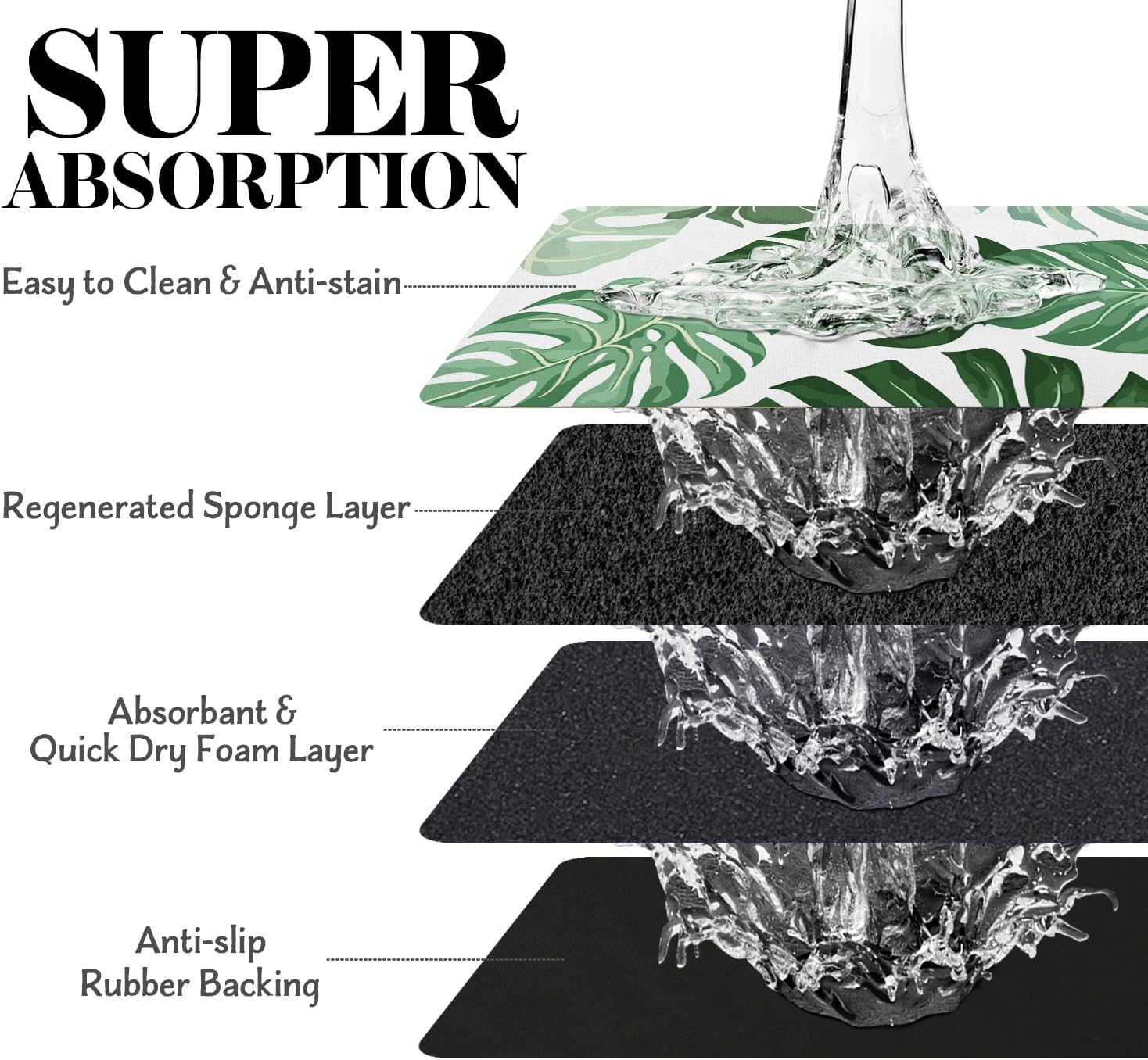 - Super Absorption: The dog mat for water bowl can absorb spilled water without leaving traces and dry quick, avoid wetting pet paws even for messy drinkers. And it does not attract pet hair like traditional silicone dog bowl mat.