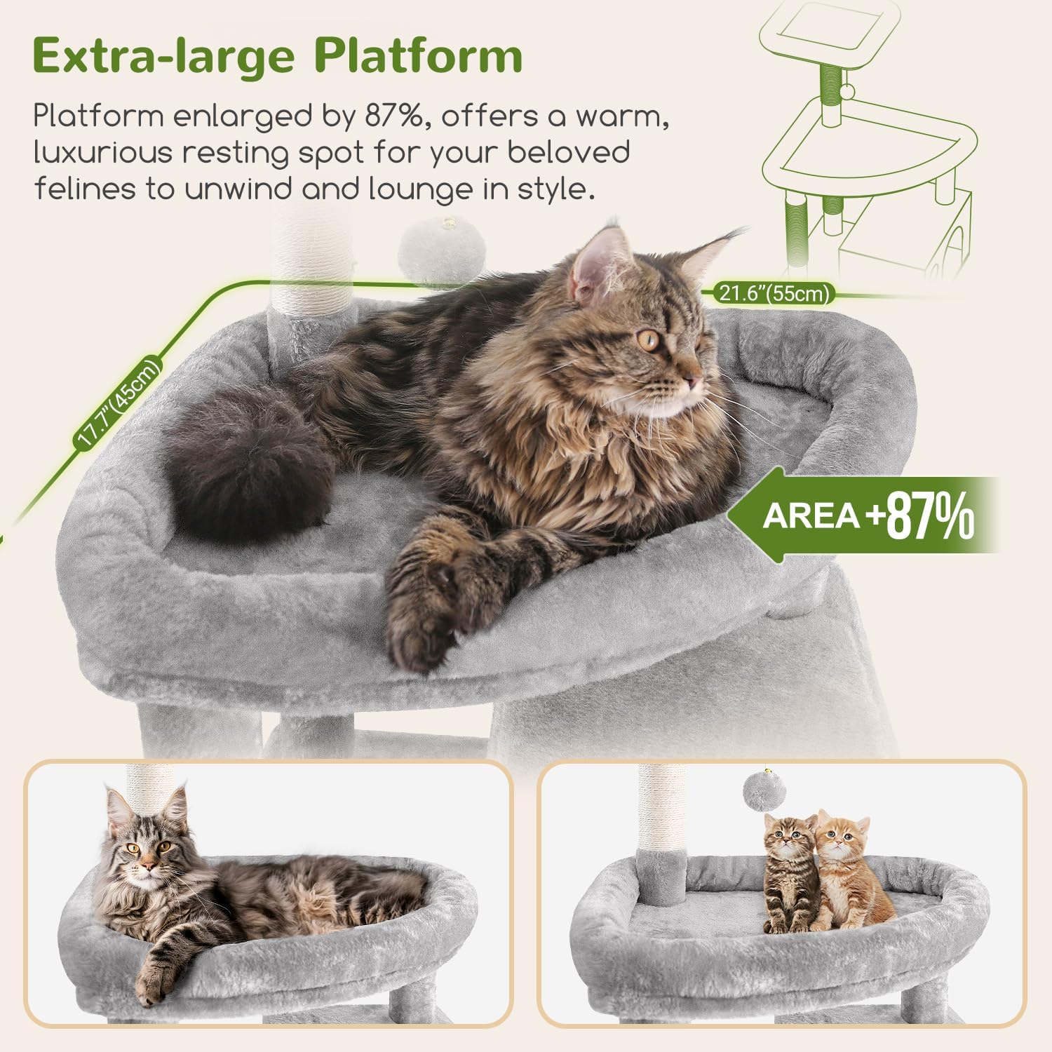 - SPACIOUS CAT CONDOS: This cat tower for indoor cats with two spacious enlarged cat condos provides privacy for big cats, suitable for multiple large felines to rest or play.