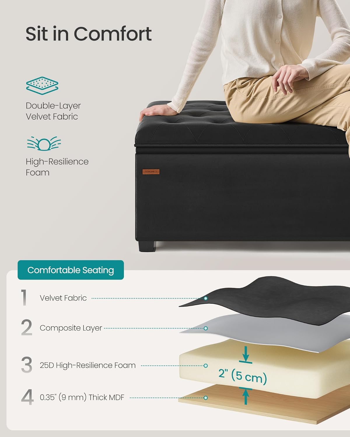 - ăELEGANT DESIGN, ENDURING COMFORTăThis ottoman boasts a chic velvet surface with an elegant tufting design, adding a stylish touch to your space. The double-layer fabric and high-resilience foam ensure lasting comfort for relaxation