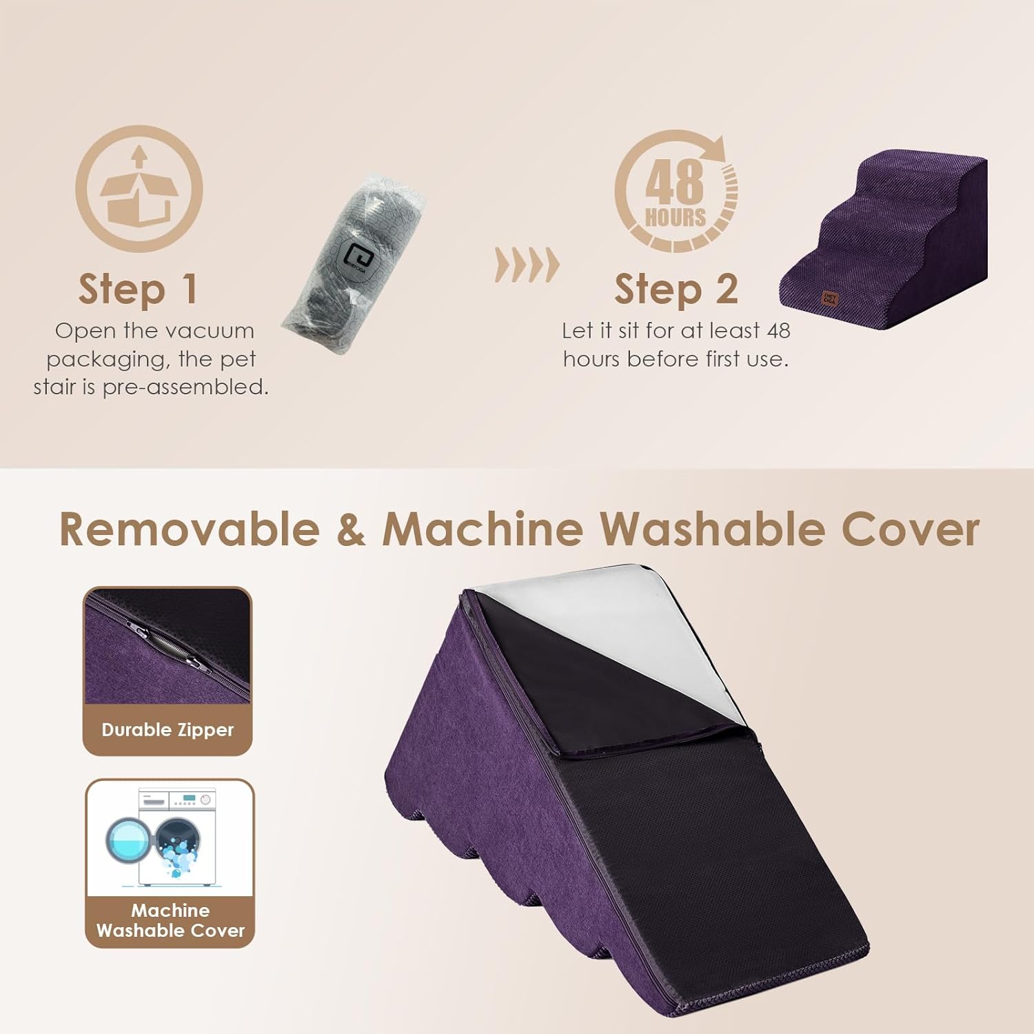- SPECIFIC AND STEADY DESIGN - 33D density of pure foam make this stair more steady when your pets walk on. The dog bed stairs can provide strong support for pets in the walking process. Low angle slope design can better protect your pet's joints.
