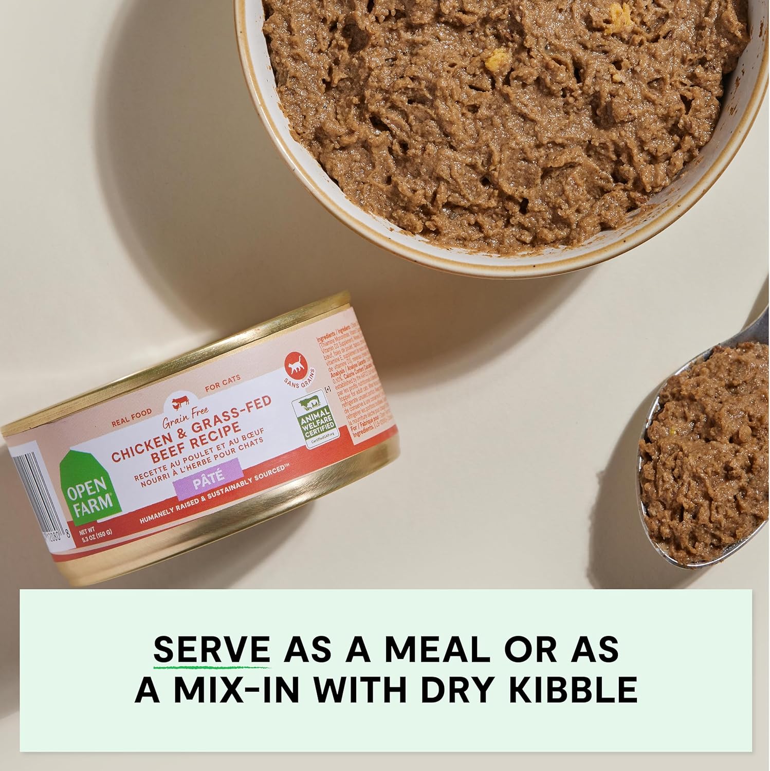 Open Farm Canned Cat Food, Paté for Complete & Balanced Nutrition, Grain-Free and Legume-Free Wet Cat Food, Chicken & Beef Recipe, 2.8oz Cans (Case of 18)