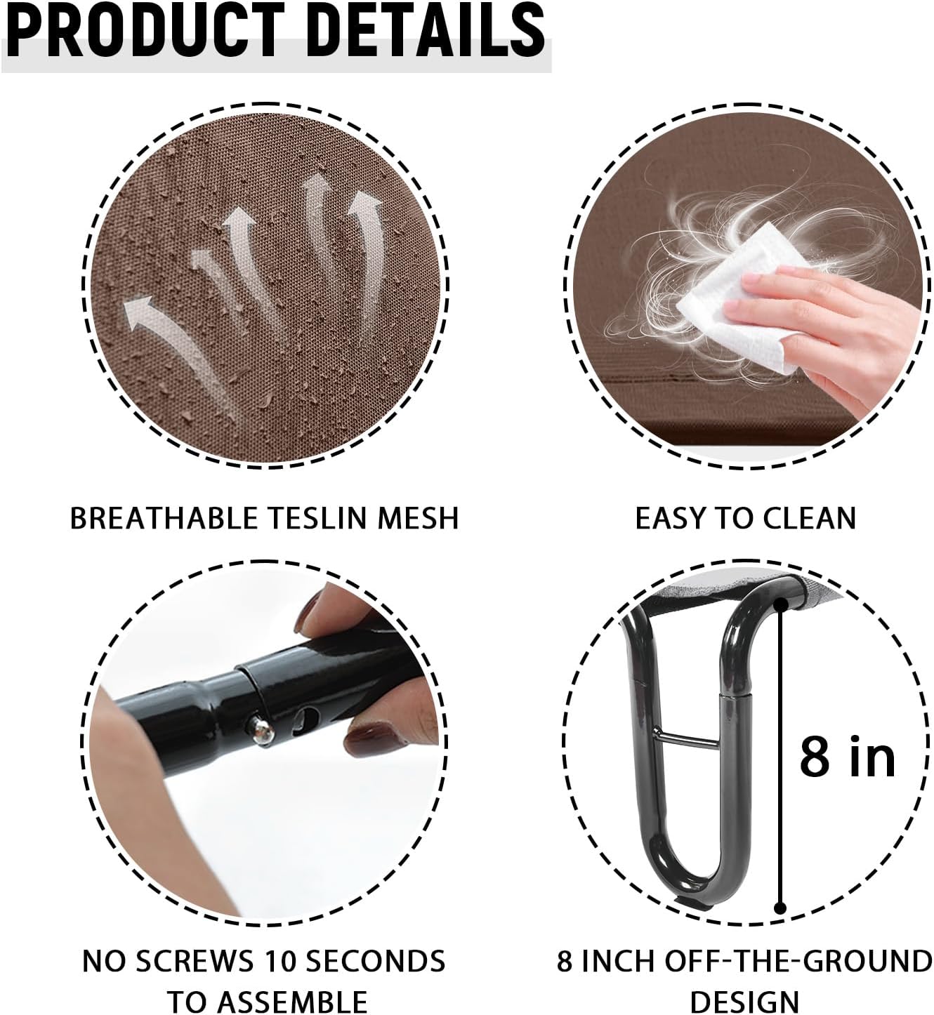 pettycare Elevated Outdoor Dog Bed - Cots Beds for Large Dogs XL, Waterproof Raised Cot Easy to Assemble, Cooling with Teslin Mesh, Durable, Non Slip, Up to 85 lbs, Brown