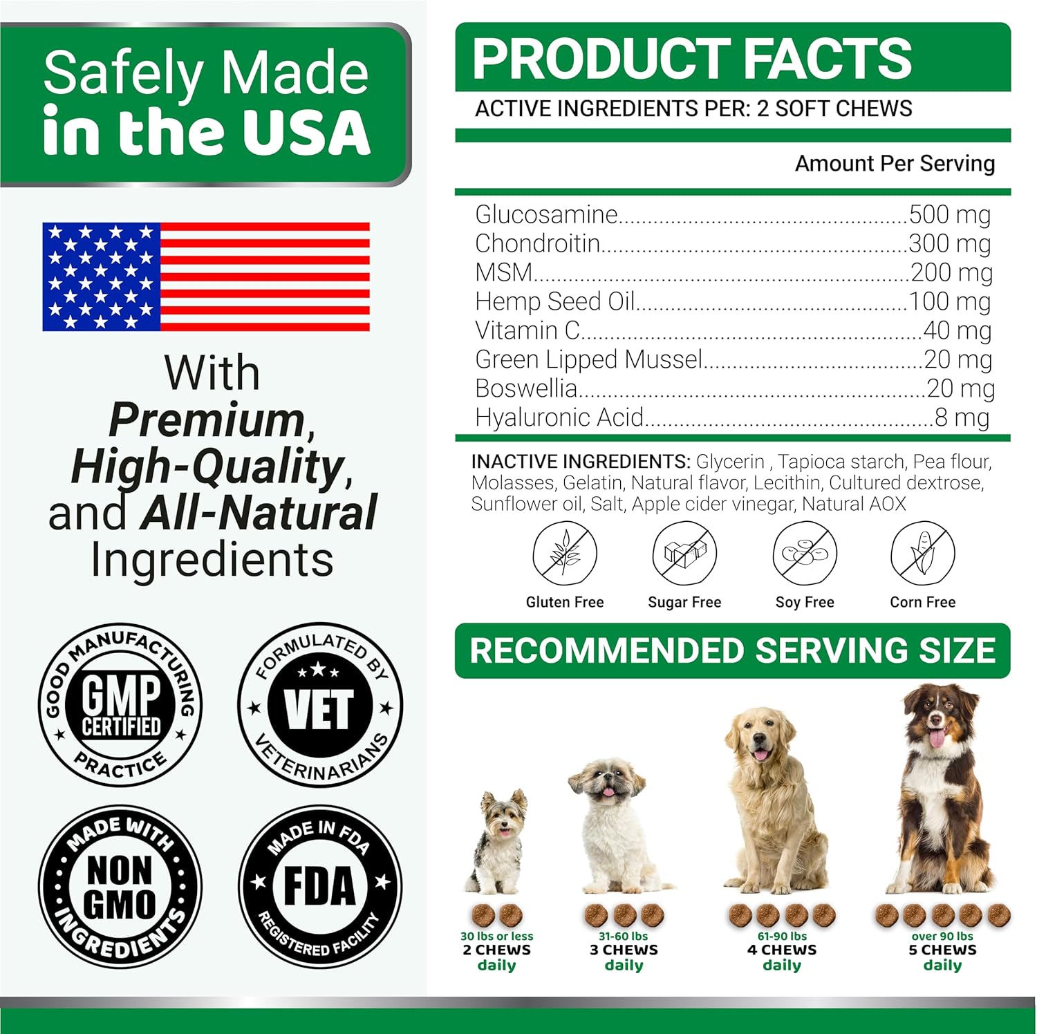 - Advanced Hip & Joint Support: Formulated with glucosamine and chondroitin, these hip and joint supplement dogs promote healthy hips and joints in dogs, potentially reducing stiffness and improving overall joint health