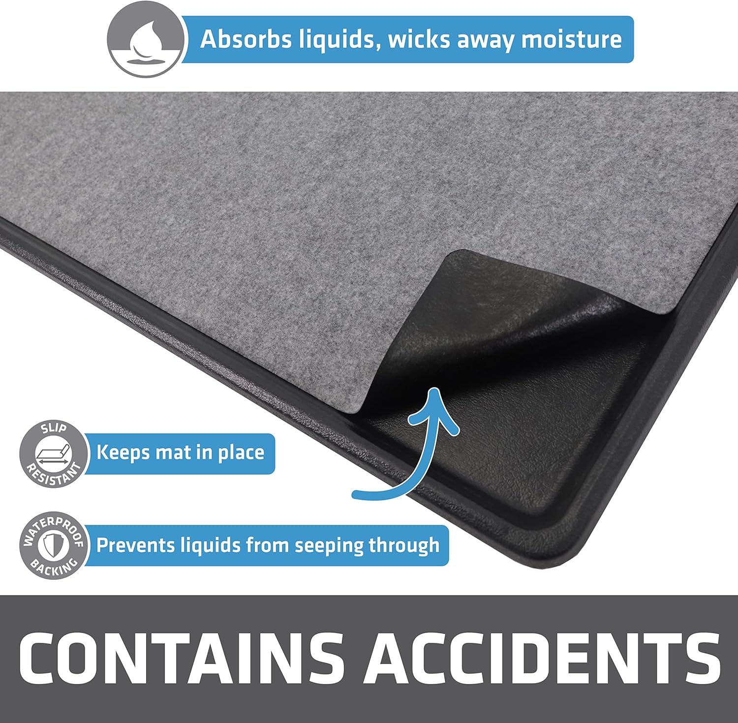 - CONTAINS ACCIDENTS & PROTECTS FLOORS: Drymate Dog Crate Mats are made with a thin yet absorbent material that contains urine inside kennels and provides a sure-footed surface for your petâs paws (great for travel). Place under the crate to muffle sound and protect floors from scuffs and scratches. MULTI-USE: Can also be used as a reusable potty pad or cat litter mat.