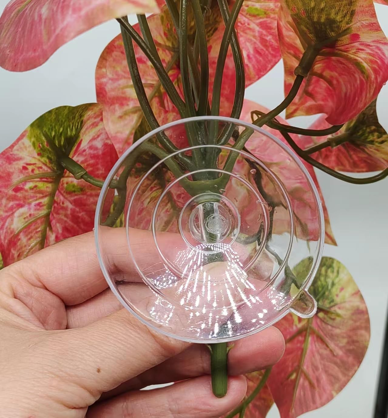 2 Pack Reptile Plants for Terrarium Decor, Amphibian Habitat Decor, Reptile Tank Accessories, Artificial Hanging Plants with Suction Cup (Red Arrowhead)
