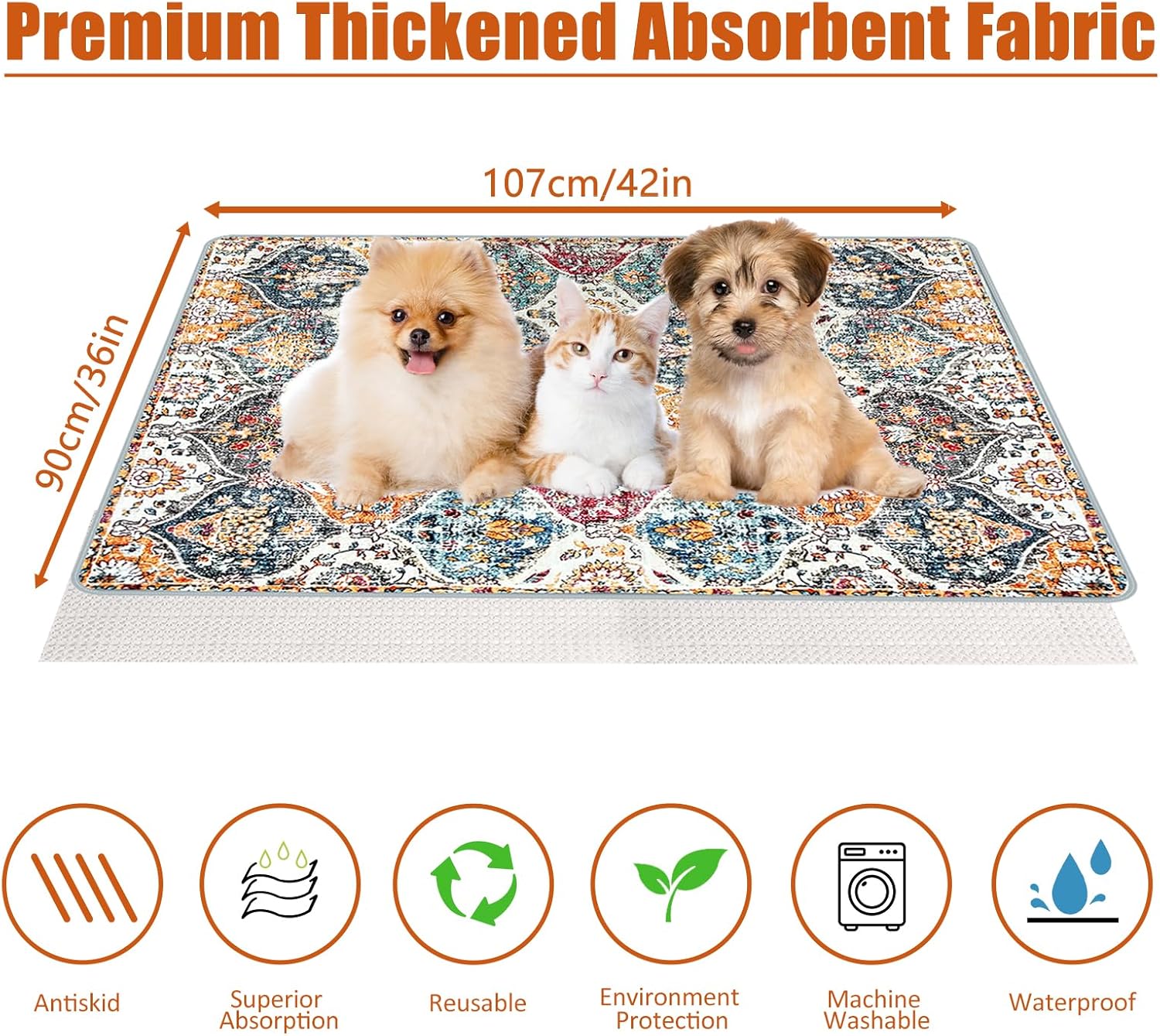 Washable Pee Pads for Dogs, (2 Pack, 36"x42") Upgrade Reusable Puppy Pads with Non-Slip Rug Pad, Super Thickening Absorbent Leakproof Dog Traning Pads Whelping Pad for Dogs, Doggie(Orange)