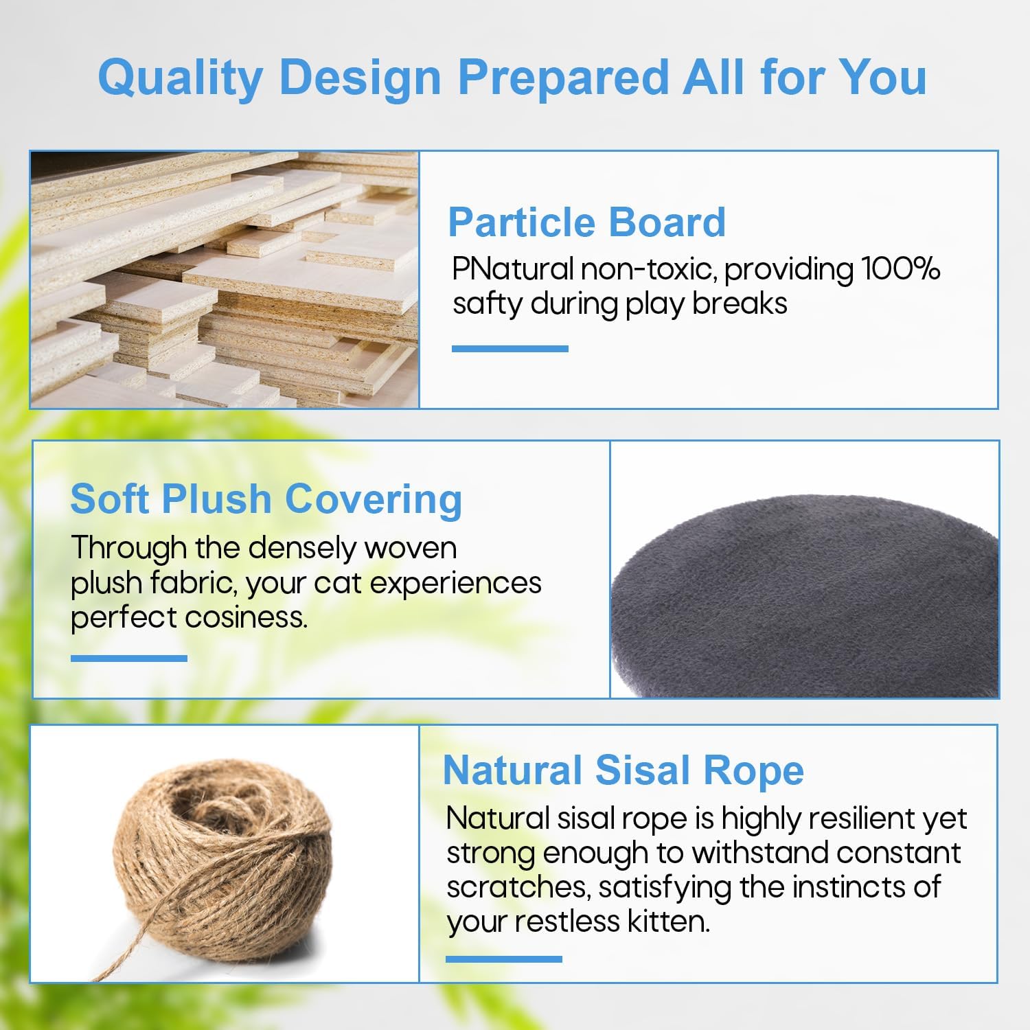 - đą ăStable ConstructionăOur Cat Tower is made of high-quality particle board with skin friendly plushy faux-fur cover to keep your cat warm and comfortable. The cat activity tree has a wall anchor strap which provides a good double security protection. You don't have to worry that the cat tree will overturn or shake accidentally.Give your cat the best protectionďźideal for average kittens and cats.