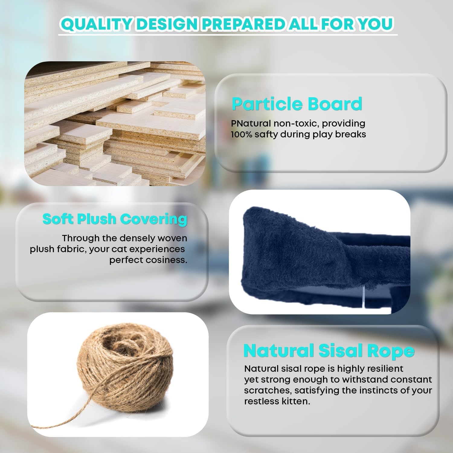 - đą ăStable ConstructionăOur Cat Tower is made of high-quality particle board with skin friendly plushy faux-fur cover to keep your cat warm and comfortable. The cat activity tree has a wall anchor strap which provides a good double security protection. You don't have to worry that the cat tree will overturn or shake accidentally.Give your cat the best protectionďźideal for average kittens and cats.