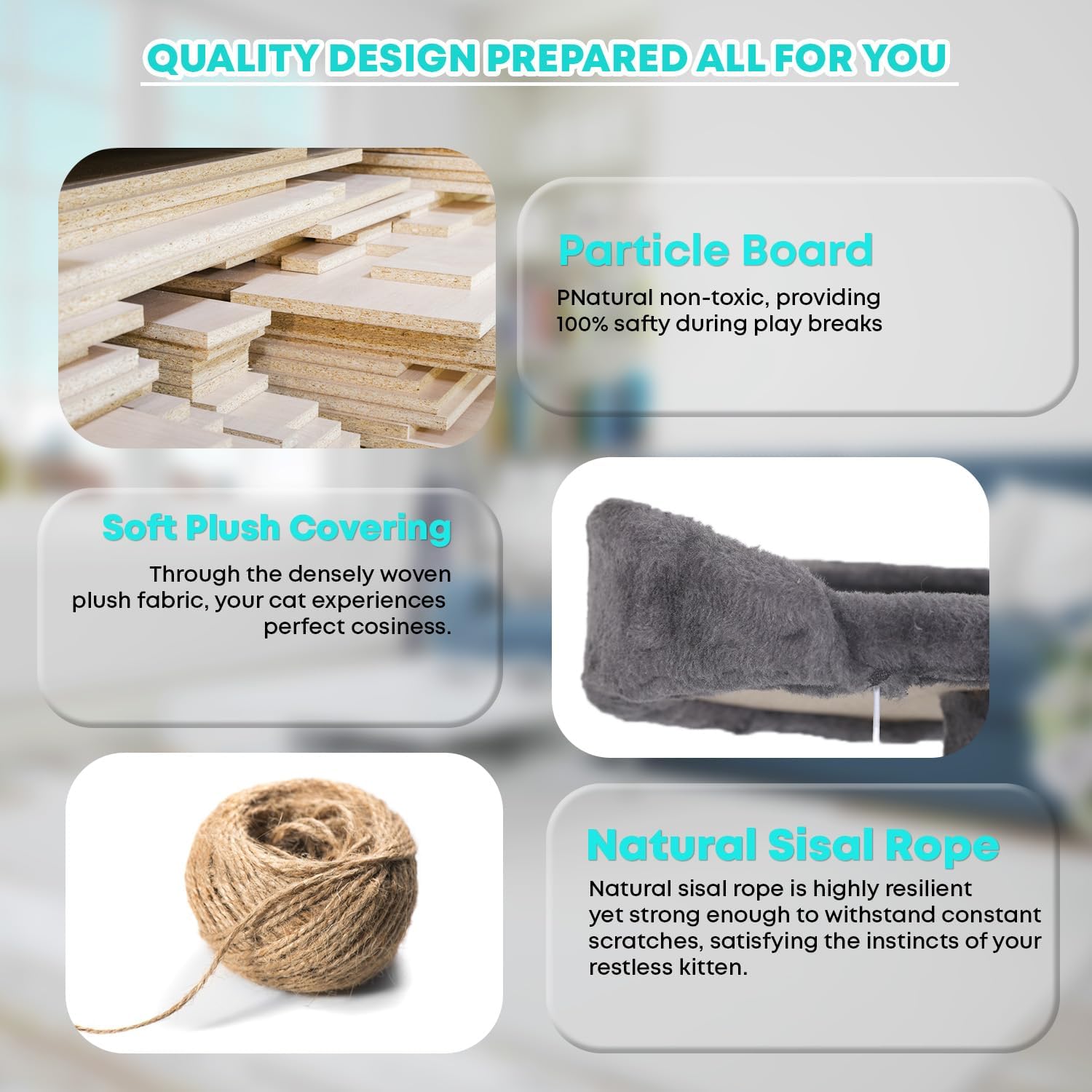 - đą ăStable ConstructionăOur Cat Tower is made of high-quality particle board with skin friendly plushy faux-fur cover to keep your cat warm and comfortable. The cat activity tree has a wall anchor strap which provides a good double security protection. You don't have to worry that the cat tree will overturn or shake accidentally.Give your cat the best protectionďźideal for average kittens and cats.