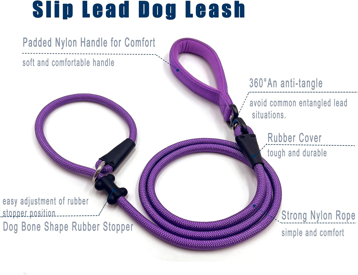 Slip Lead Dog Leash,Strong Nylon Rope Leash and Padded Handle,No Pull Outdoor Walking Training Lead for Small Medium Large Dogs (Purple, 1/2"×6ft)
