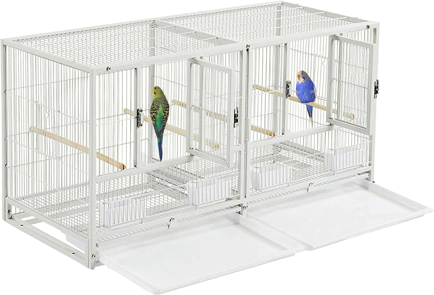 - Center Divided Breeding Cage With Two Front Swivel Out Door and Safety Lock Set. Side Breeding Nest Doors Included.