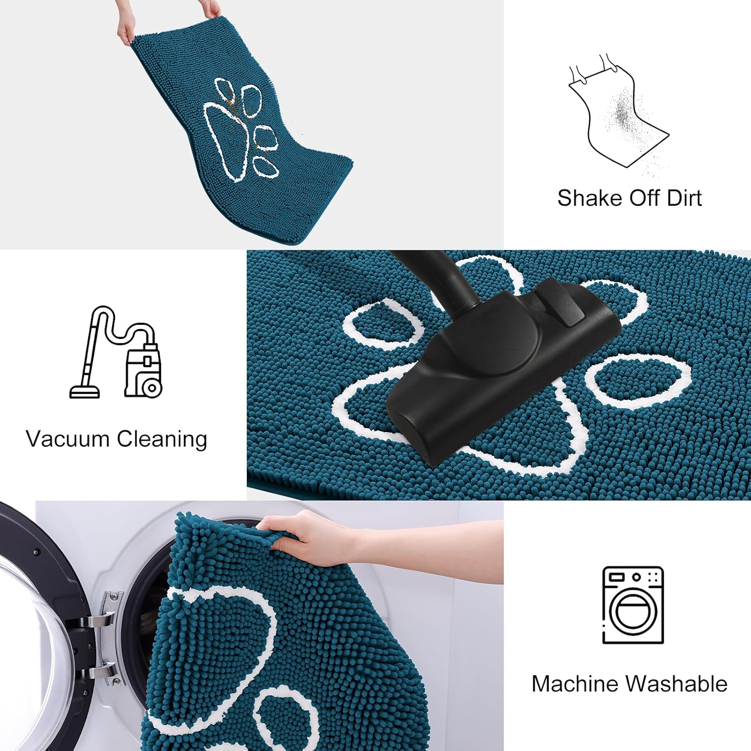 Smiry Dog Door Mat for Muddy Paws, Absorbent Dirt Trapper Non Slip Quick Dry Washable Chenille Mat for Mud Dogs, Entry Rug for Indoor and Outdoor (59x35 Inches, Atlantic Blue)