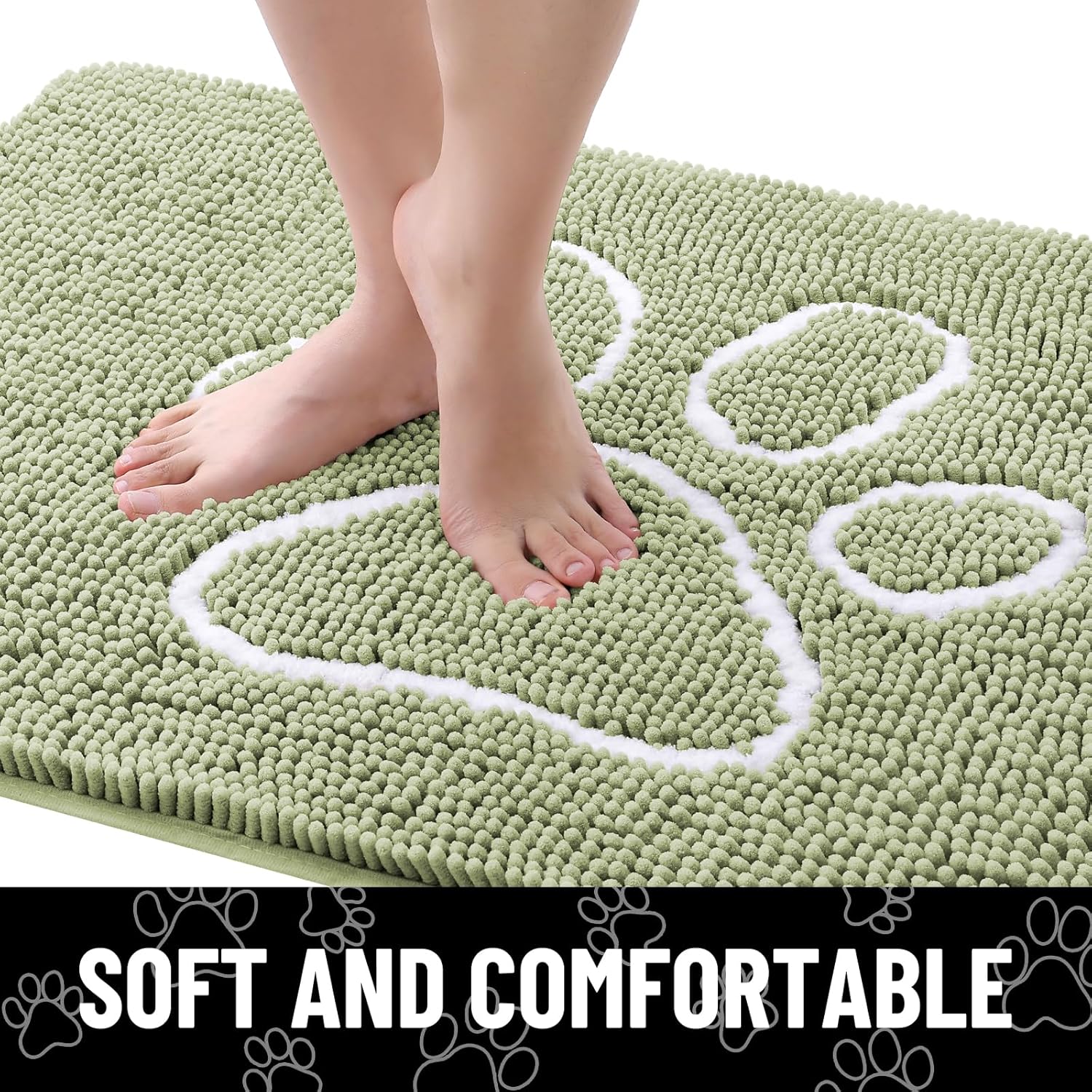 Smiry Dog Door Mat for Muddy Paws, Absorbent Dirt Trapper Non Slip Quick Dry Washable Chenille Mat for Mud Dogs, Entry Rug for Indoor and Outdoor (47x24 Inches, Sage Green)