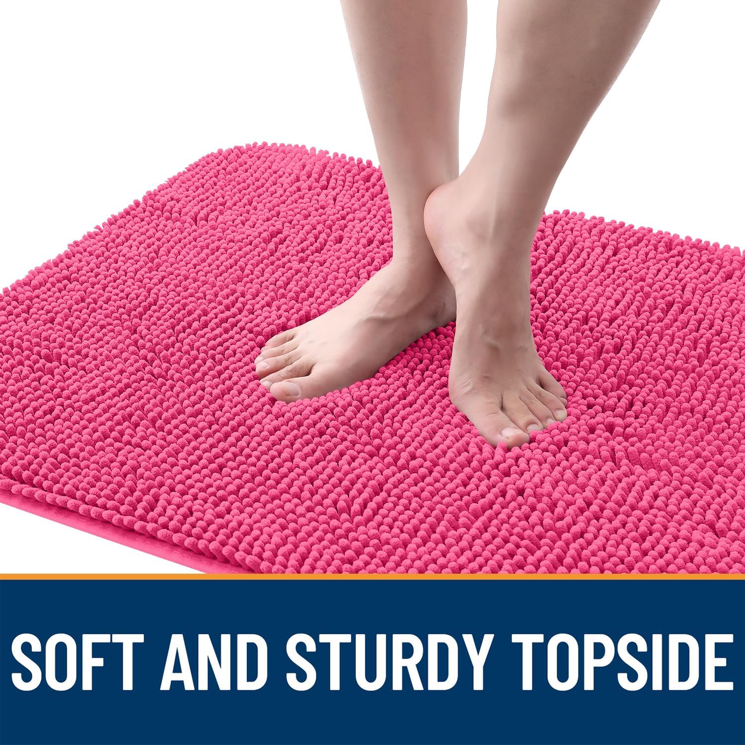 OLANLY Dog Door Mat for Muddy Paws 47x32, Absorbs Moisture and Dirt, Absorbent Non-Slip Washable Doormat, Quick Dry Chenille Mud Mat for Dogs, Entry Indoor Entryway Carpet for Inside Floor, Hot Pink
