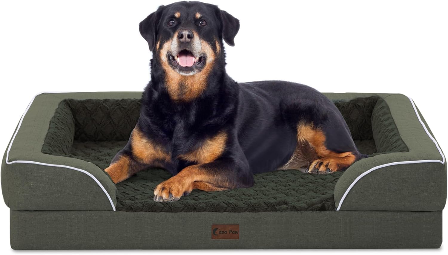 Orthopedic Waterproof Dog Bed for Extra Large Dogs, Memory Foam XL Dog Bed with Sides, Egg-Crate Foam and Non-Slip Bottom Jumbo Dogs Couch Beds with Washable Removable Cover(Jumbo,Dark Green)