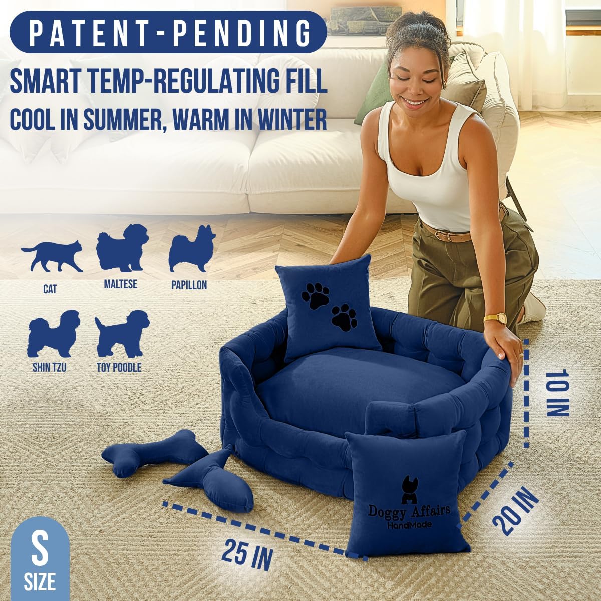 Luxury Cat and Dog Bed Chesterfield – Handcrafted Velvet Throne for Dogs | Joint Support, Calming & Temp-Regulating Comfort | Durable 5+ Years, Anti-Claw, Washable 100+ Times – S, Blue