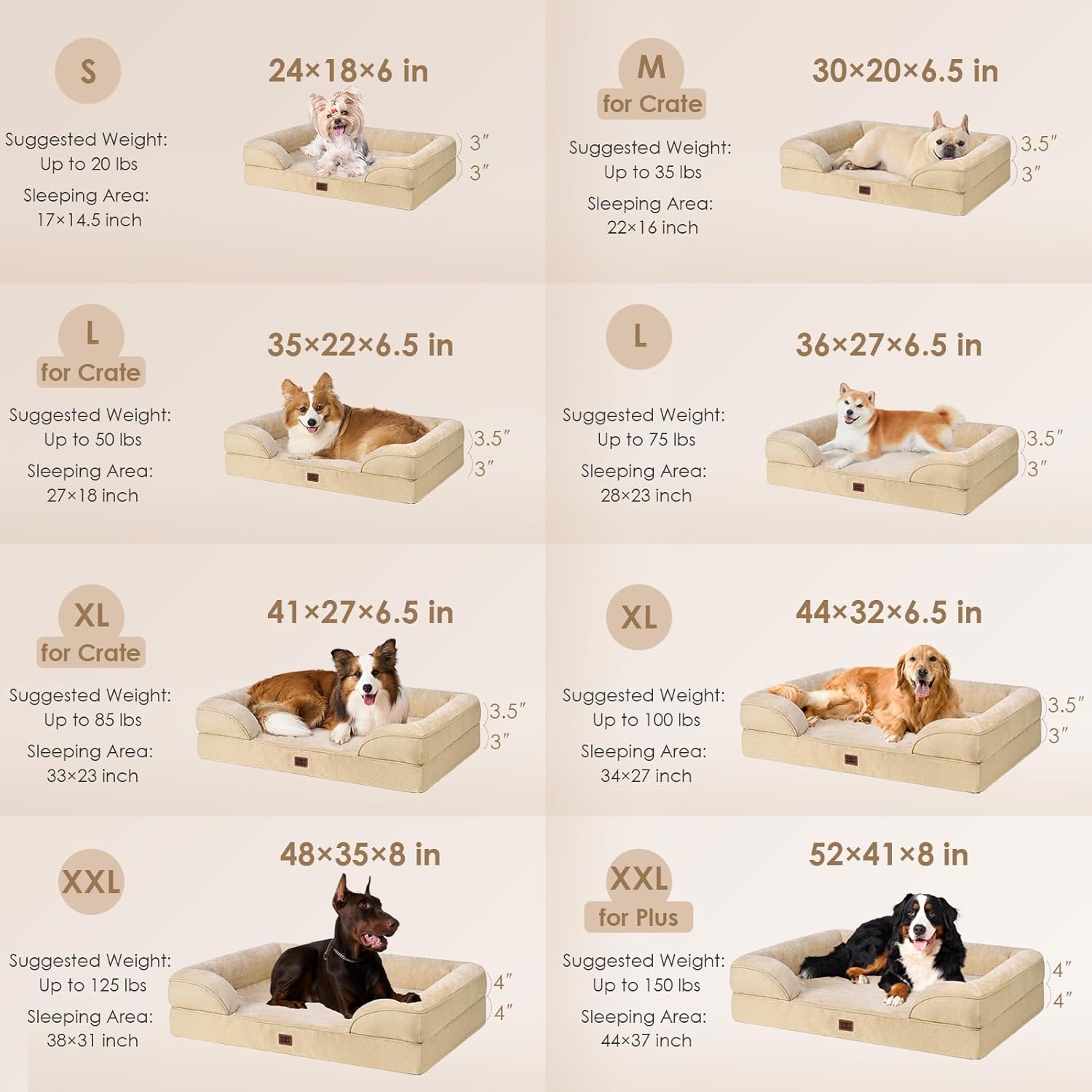 EHEYCIGA Orthopedic Dog Beds for Extra Large Dogs, Waterproof Memory Foam XL Pet Bed with Sides, Non-Slip Bottom and Egg-Crate Foam Big Dog Couch Bed with Washable Removable Cover, Greige