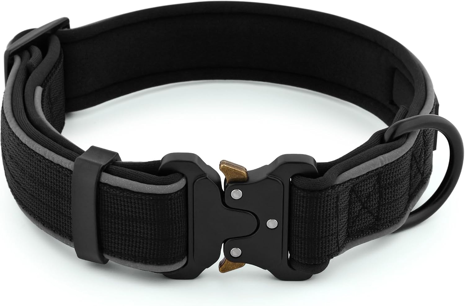 Plutus Pet Tactical Dog Collar, Reflective, Adjustable Heavy Duty Dog Collar, Soft Padded and Comfortable, for Small Medium and Large Dogs (Black, L)