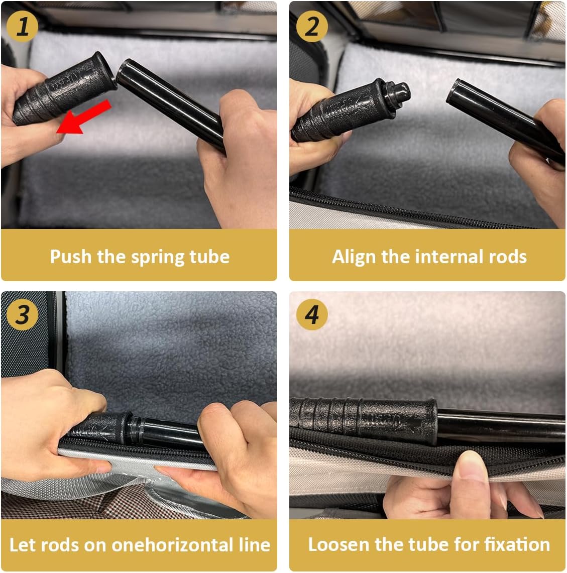 - SAFETY DESIGN- Each access has a zipper lock to prevent cats from escaping. On the side have seatbelt loops, can fix the carrier in the car. The internal metal support structure may also provide good protection for pets.