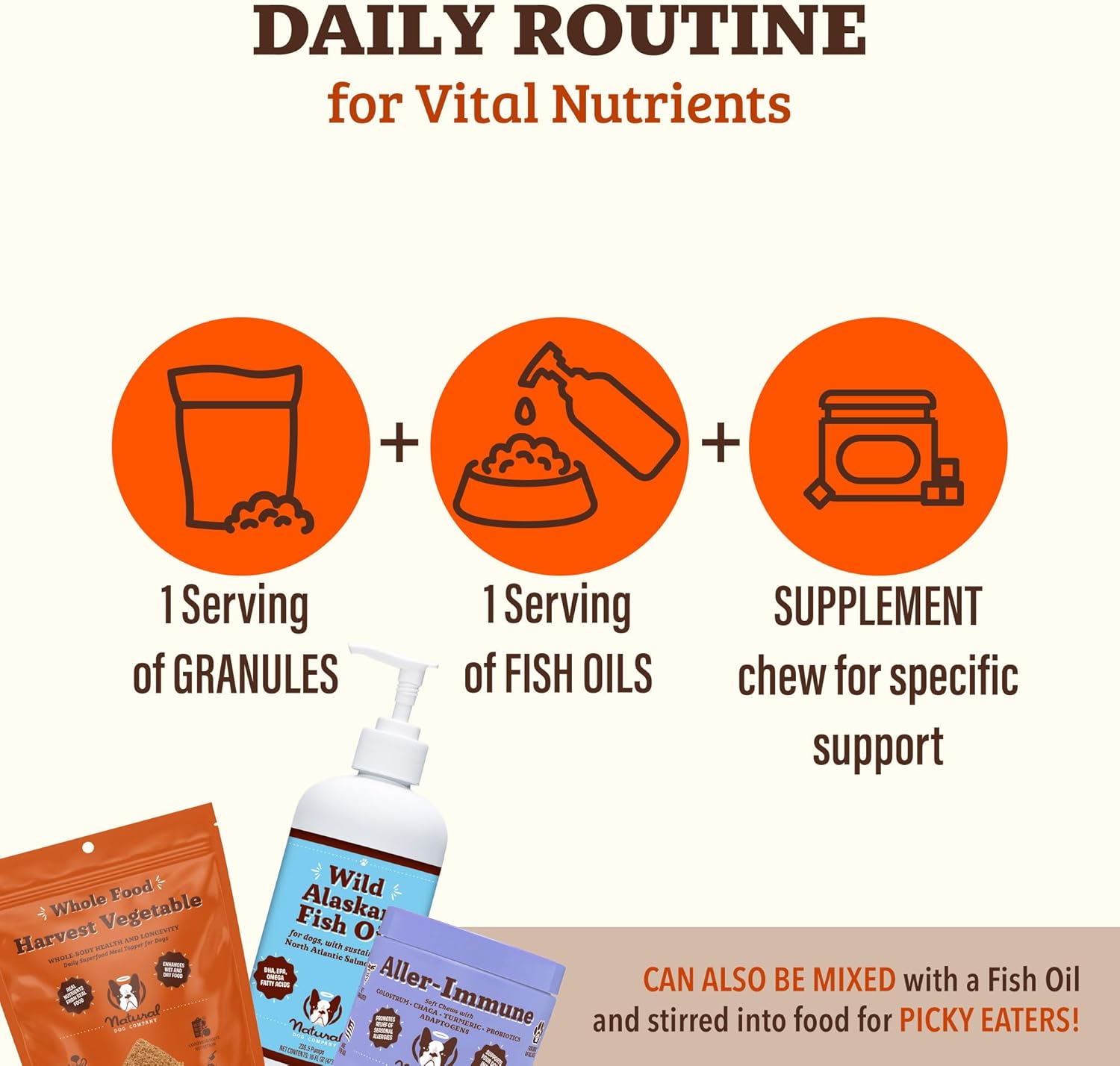 - PAIR WITH OUR FISH OIL FOR OPTIMAL NUTRIENT ENHANCEMENT: Transform your dog's health with a daily serving of granules added to one of our fish oils, ensuring your pup is in peak condition. Elevate your dogâs health with the perfect daily duo of granules and fish oil, delivering every essential nutrient needed. Simply add your dogs daily dose of the granules and the oil to their normal meal.