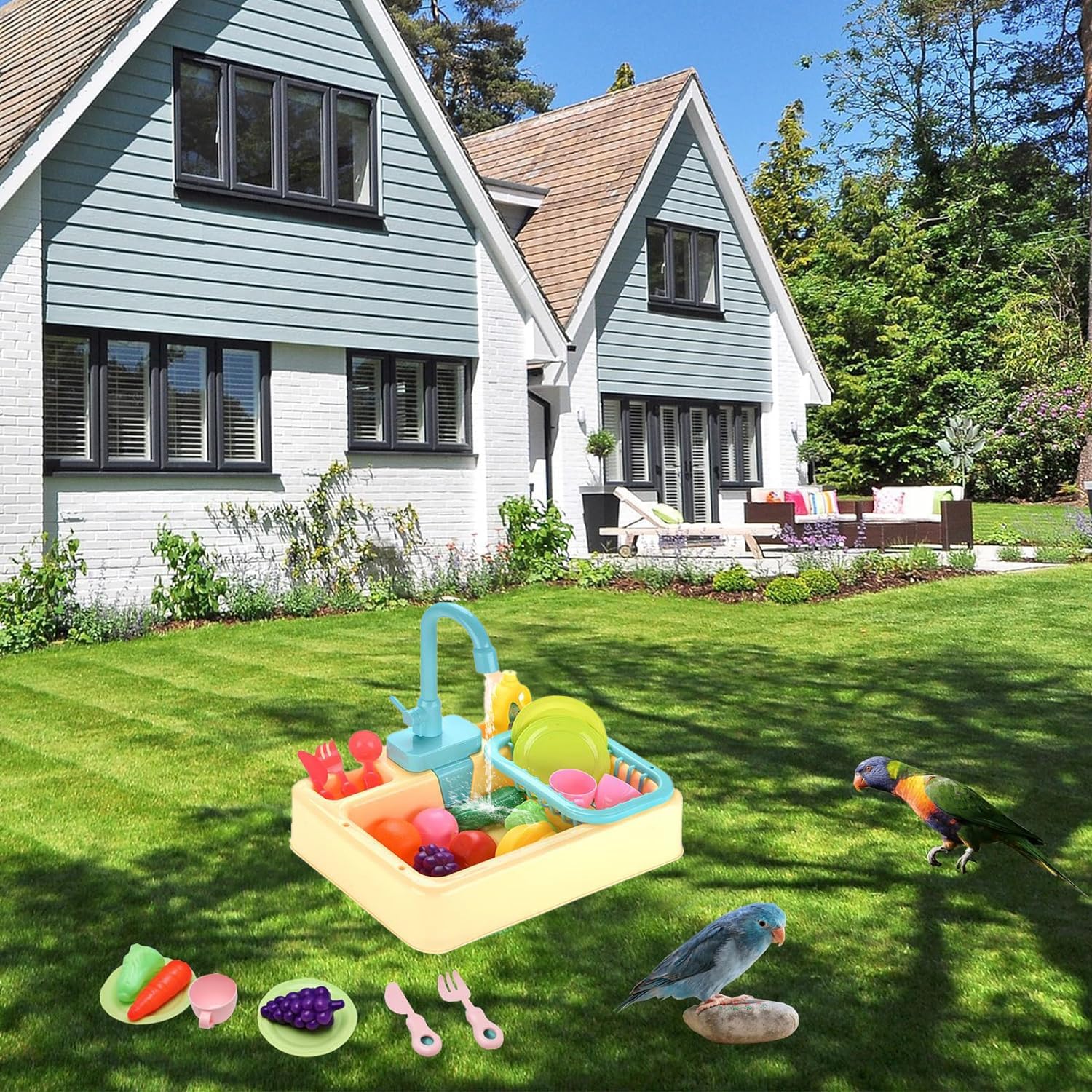 - Multi functional bird bathtub : The parrot bathtub can be your childs simulated dishwasher or your bird parrot bathing tool. It can be used as a childrens toy, and the bird bath tub contains many small toy accessories, which will make birds more interesting when taking a shower. You, your children, and pets will have a wonderful summer.