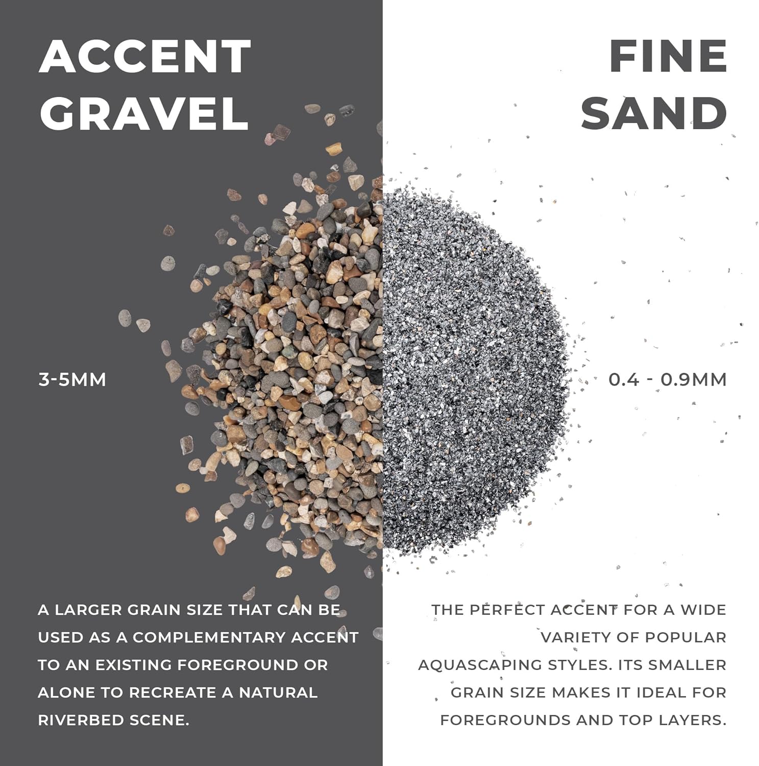 - [Fine-grained Substrate] Our fine-grained Mojave sand is a mixture of richer colors, producing a warmer tone. This fish tank substrate also works in blackwater aquariums, biotopes or planted tanks that feature Dragon Stone or aquarium driftwood.