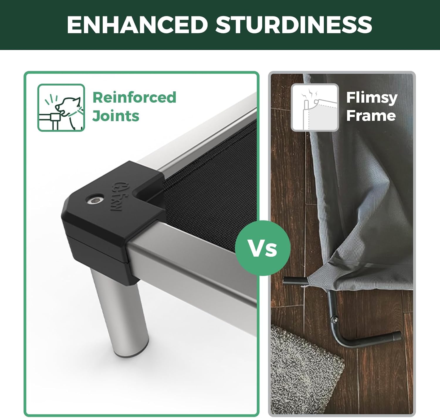 - Indestructible & Dog-Safe: Crafted with a premium aluminum alloy frame and chew-proof edges, this bed withstands aggressive chewers while keeping your pupâs gums safe and happy.
