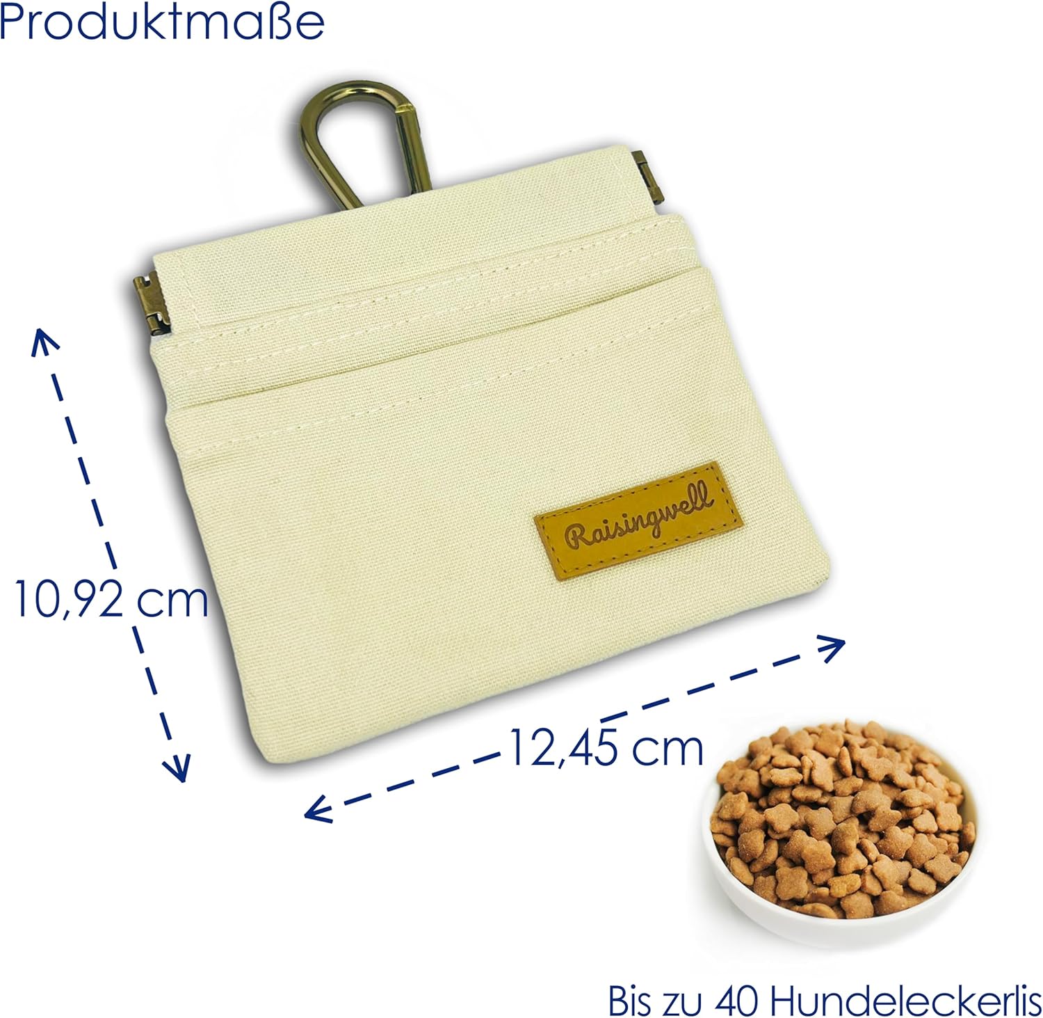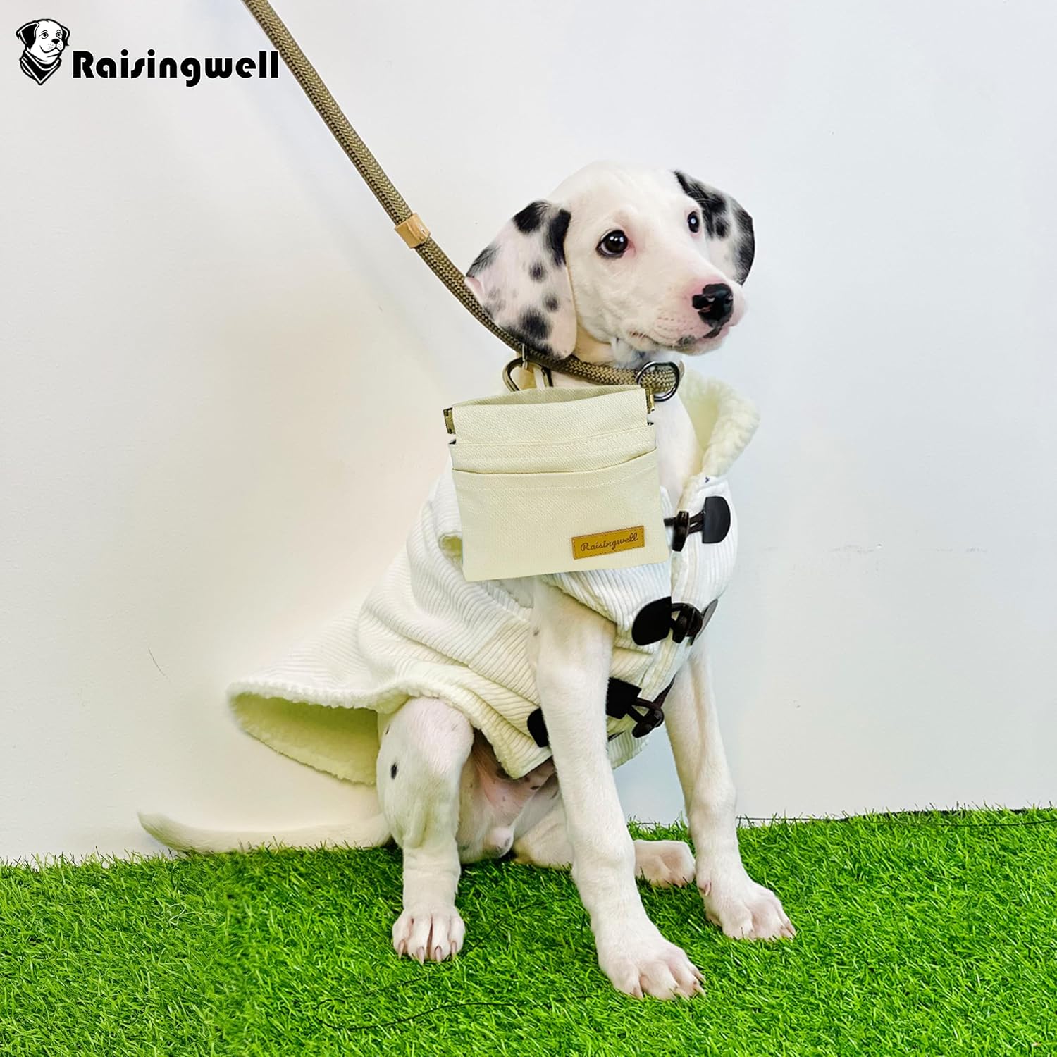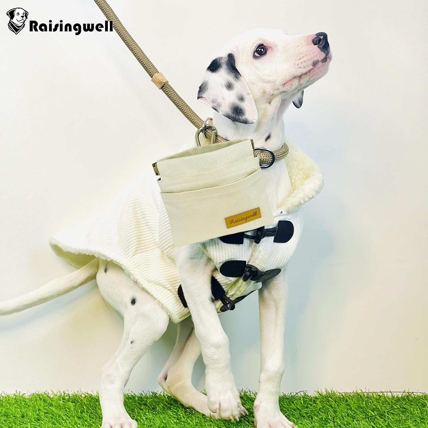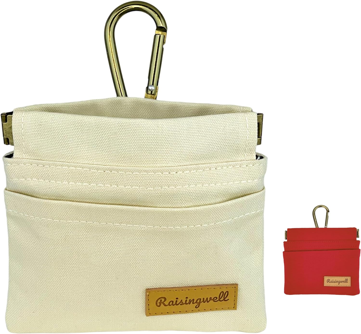 - Durable Material: Raisingwell's dog treat training pouch is crafted from durable, washable, non-toxic vegan fabric, made of pure cotton. In particular, the waterproof lining addresses the issue of difficult cleaning inside the training pouch.