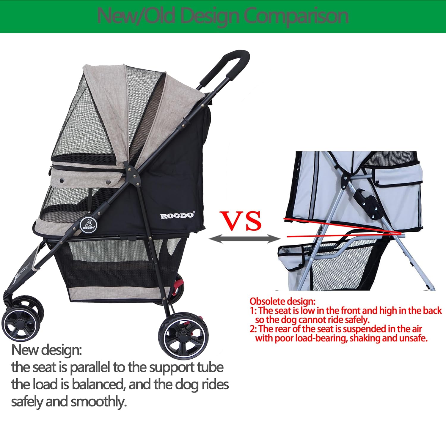 - ROODO multifunctional three-wheeled pet stroller is smooth and easy to use. The pet rest area is covered with multi-directional breathable nets to enjoy the fresh air and protect your pets from insects. Equipped with a storage basket for easy storage of items. The pet stroller can be folded easily and compactly enough to fit into the trunk of the car. It is a great choice for walking, jogging, and traveling. Bring your pet to enjoy outdoor activities with you.