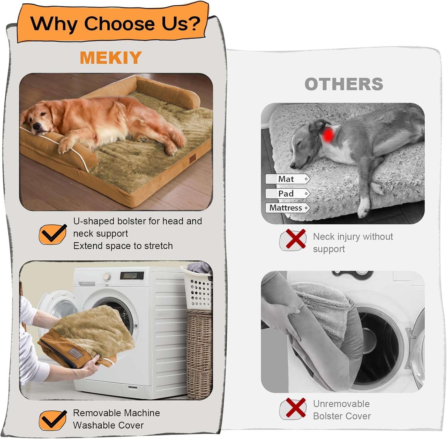 Large Dog Bed Orthopedic Washable, Orthopedic Dog Beds for Large Dogs with Washable Cover, Removable Bolster and Non-Slip Bottom Orange Dogs Beds, XL XLarge Extra Large Dogs